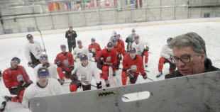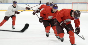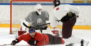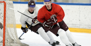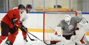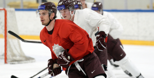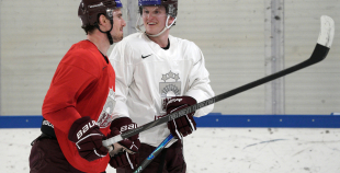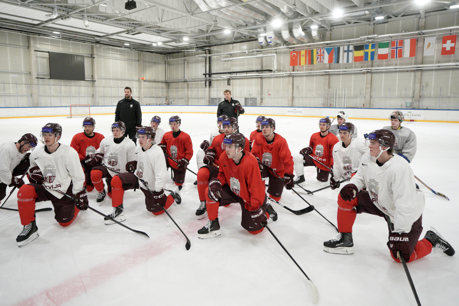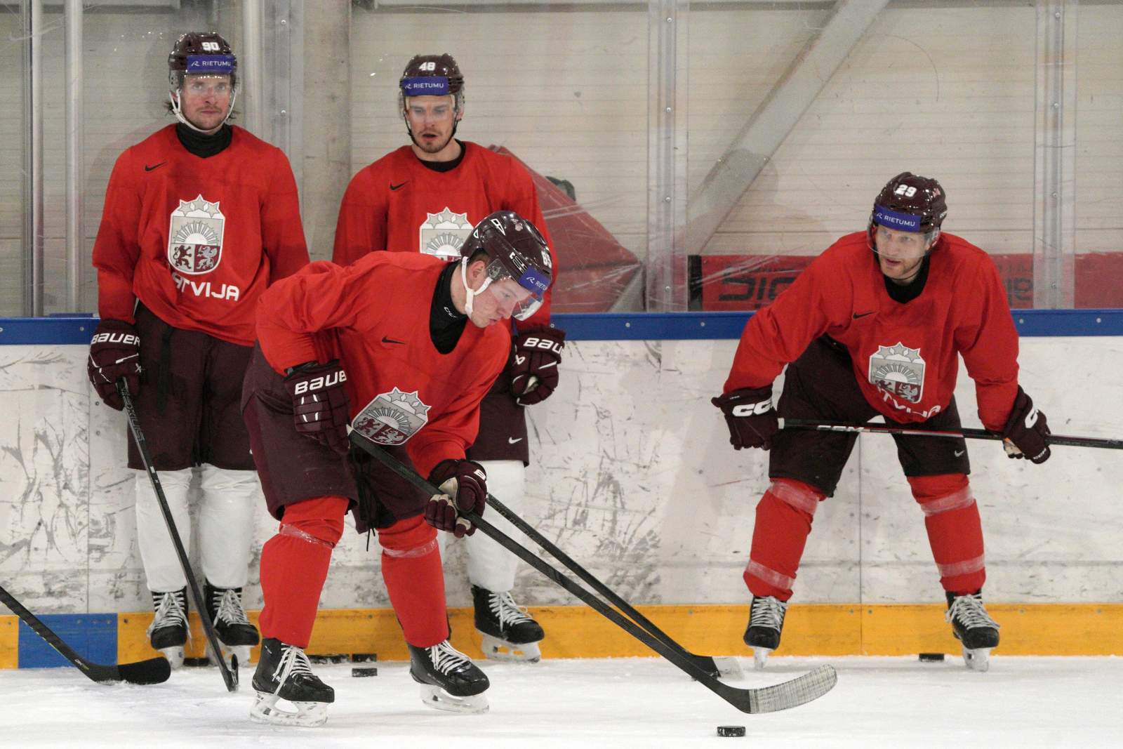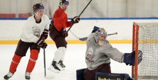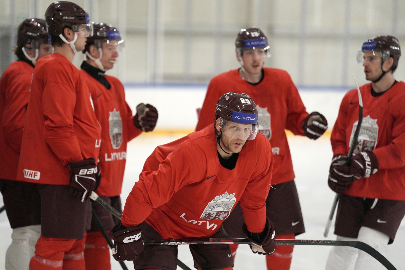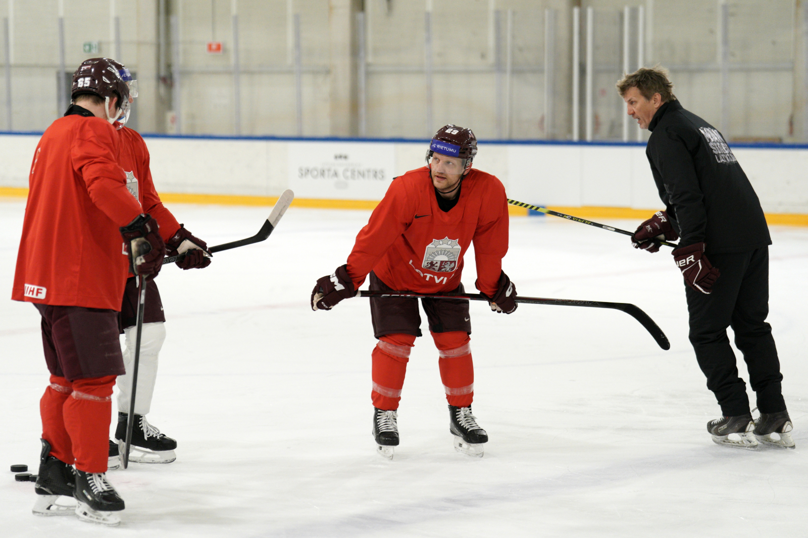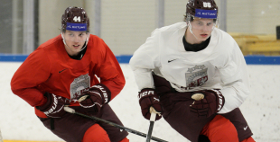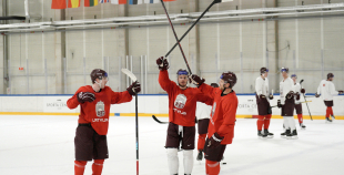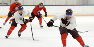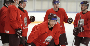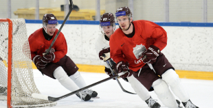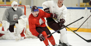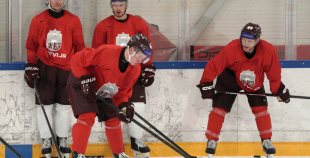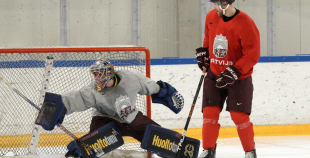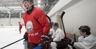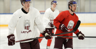 Latvijas hokeja izlases aizvada pirmo treniņnometnes dienu