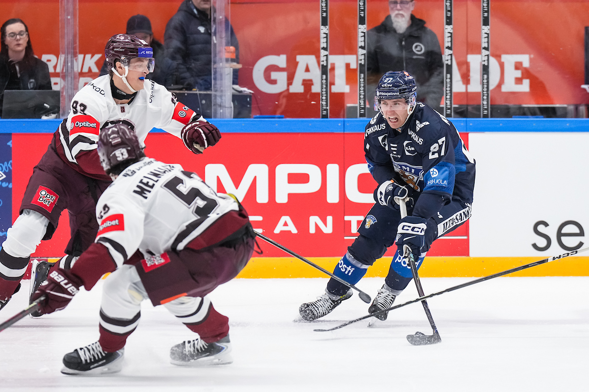 Vārti: 7:10 Andersons (Skrastiņš, Smirnovs) 0:1, 32:52 Puistola (Kinnunens, Rīkola) 1:1, 64:07 Batņa (Andžāns).
