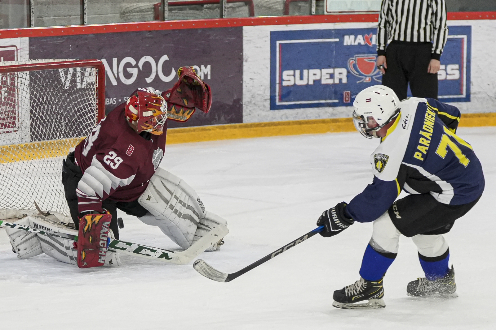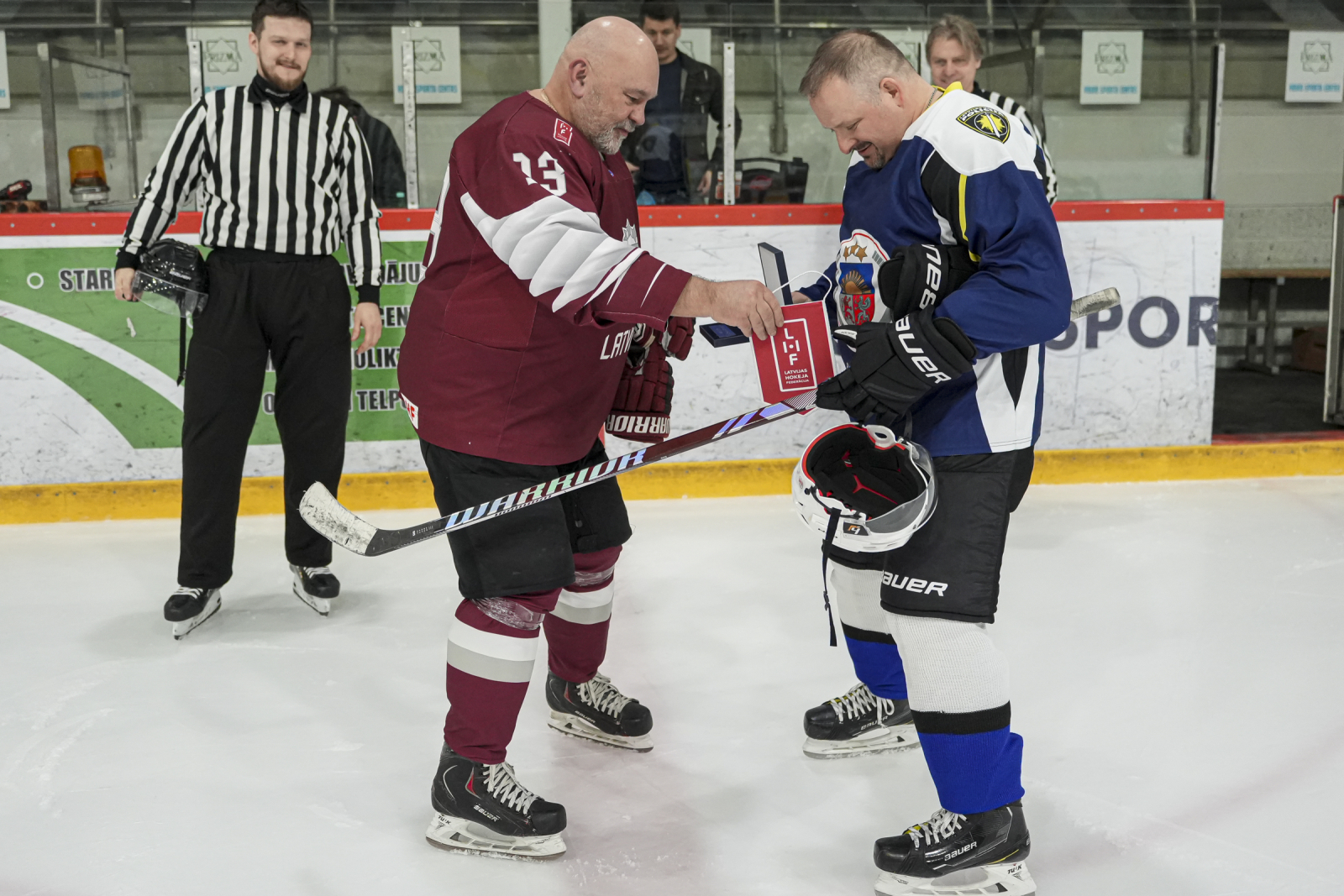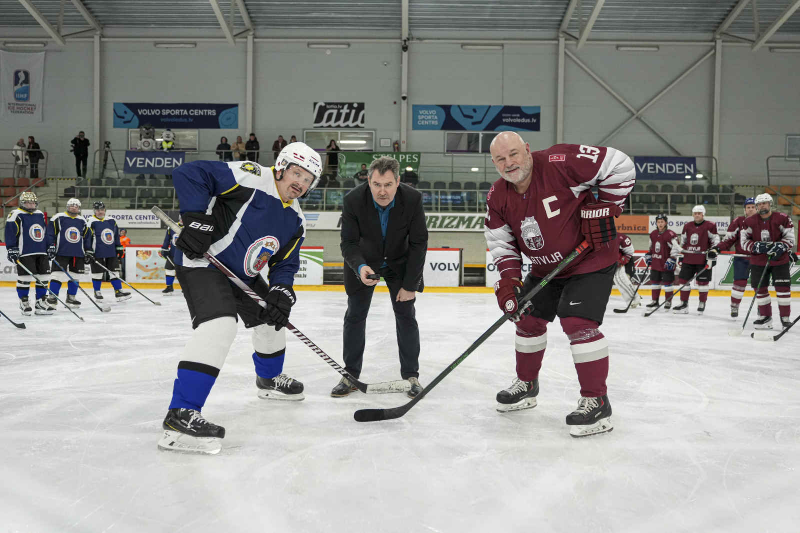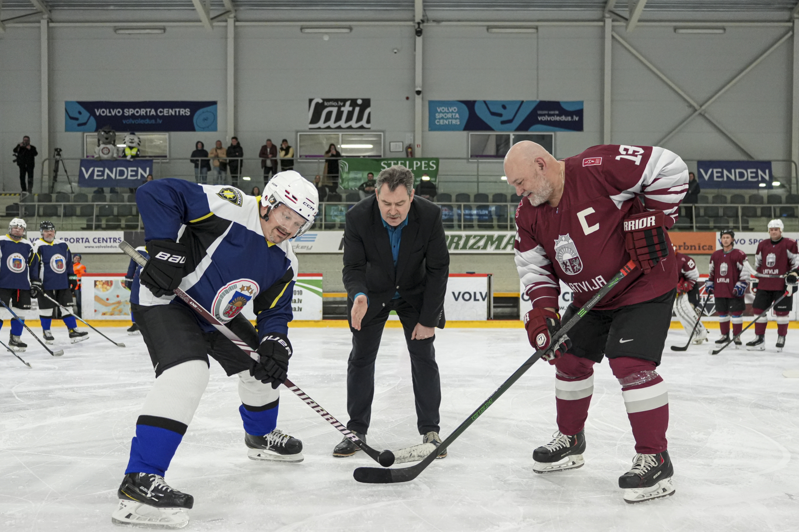 Maču atklāja Latvijas Hokeja federācijas valdes loceklis, veterānu komitejas vadītājs Ralfs Bukarts un Valsts policijas priekšnieks Armands Ruks.