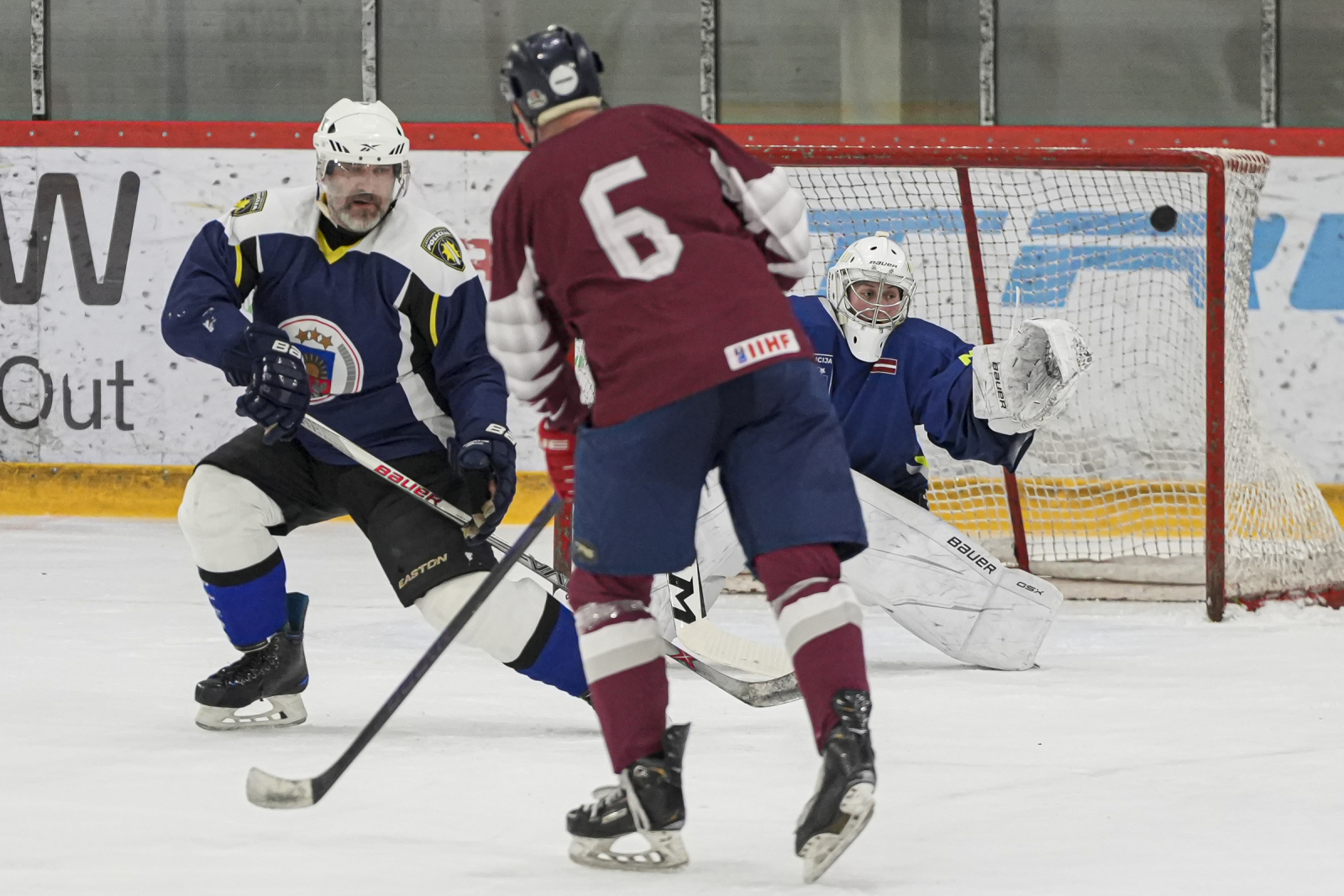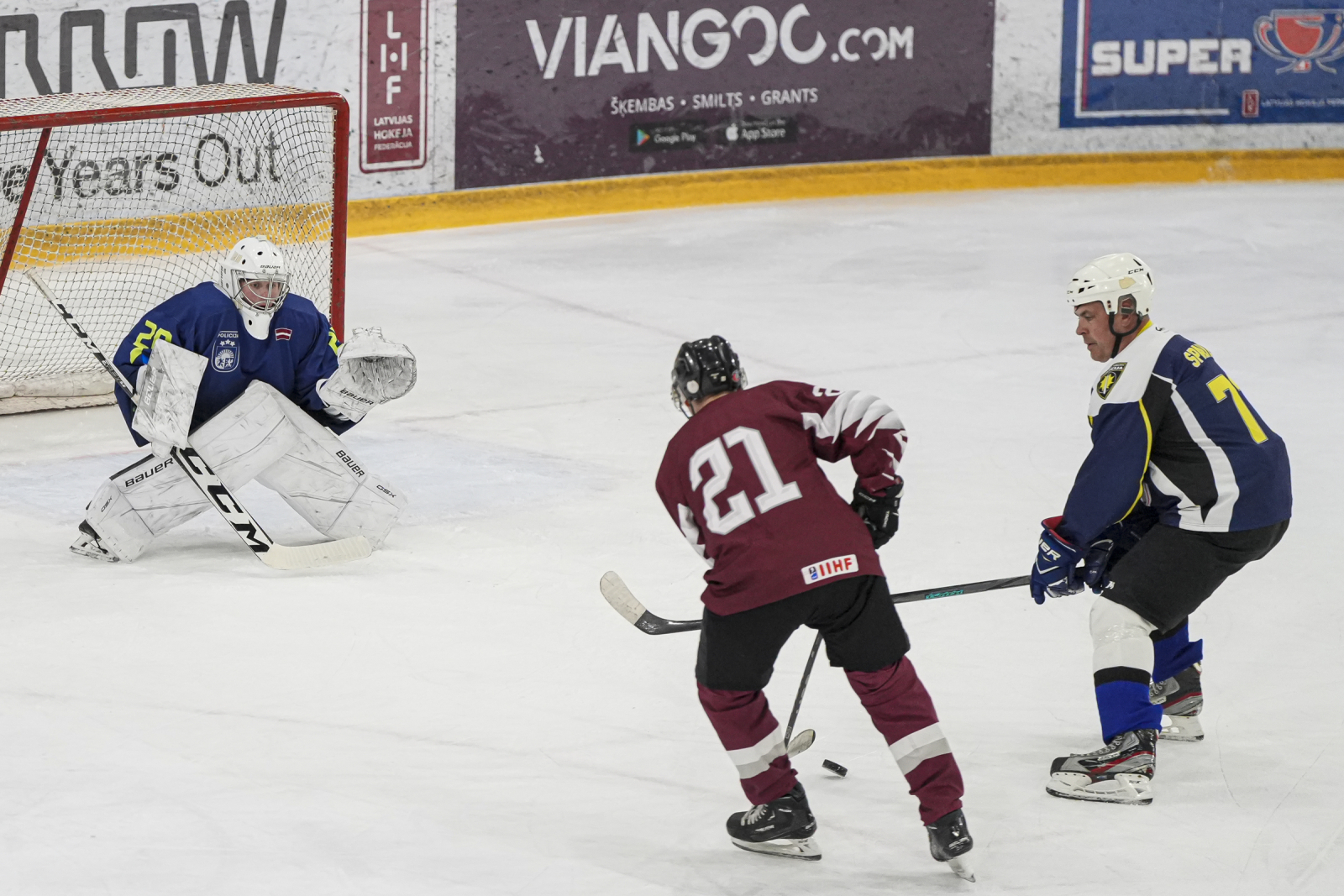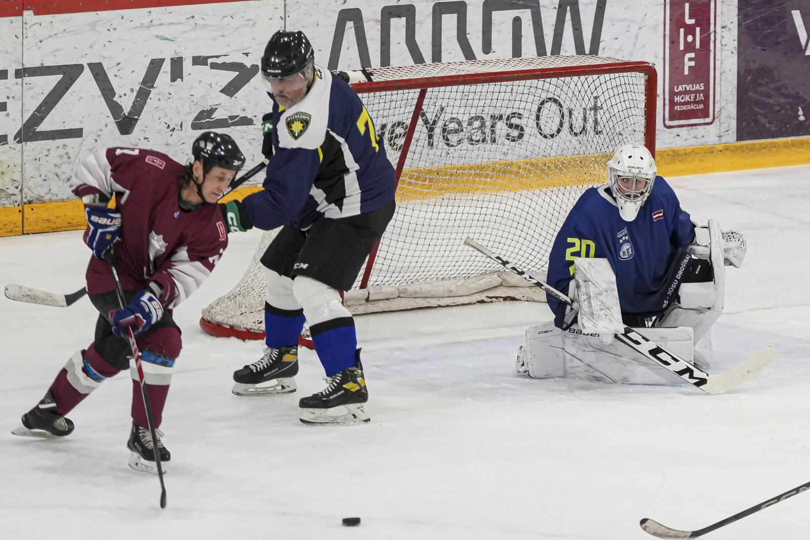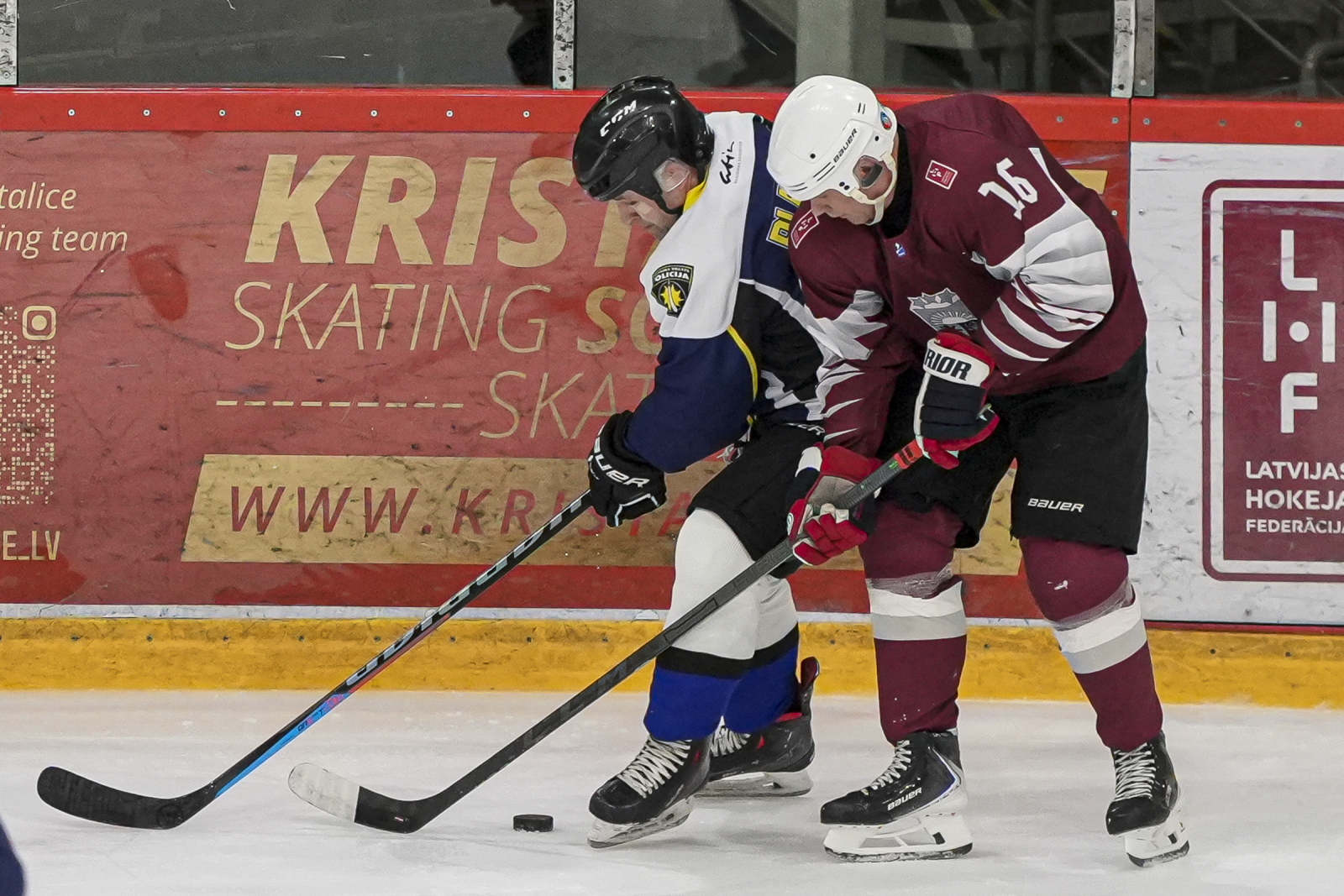 Piektdien, 20. martā, plkst. 15:45 “Volvo SC” ledus hallē norisinājās draudzības spēle, kur nūjas krustoja Latvijas veterānu +55 izlase un Policijas veterānu komanda.
