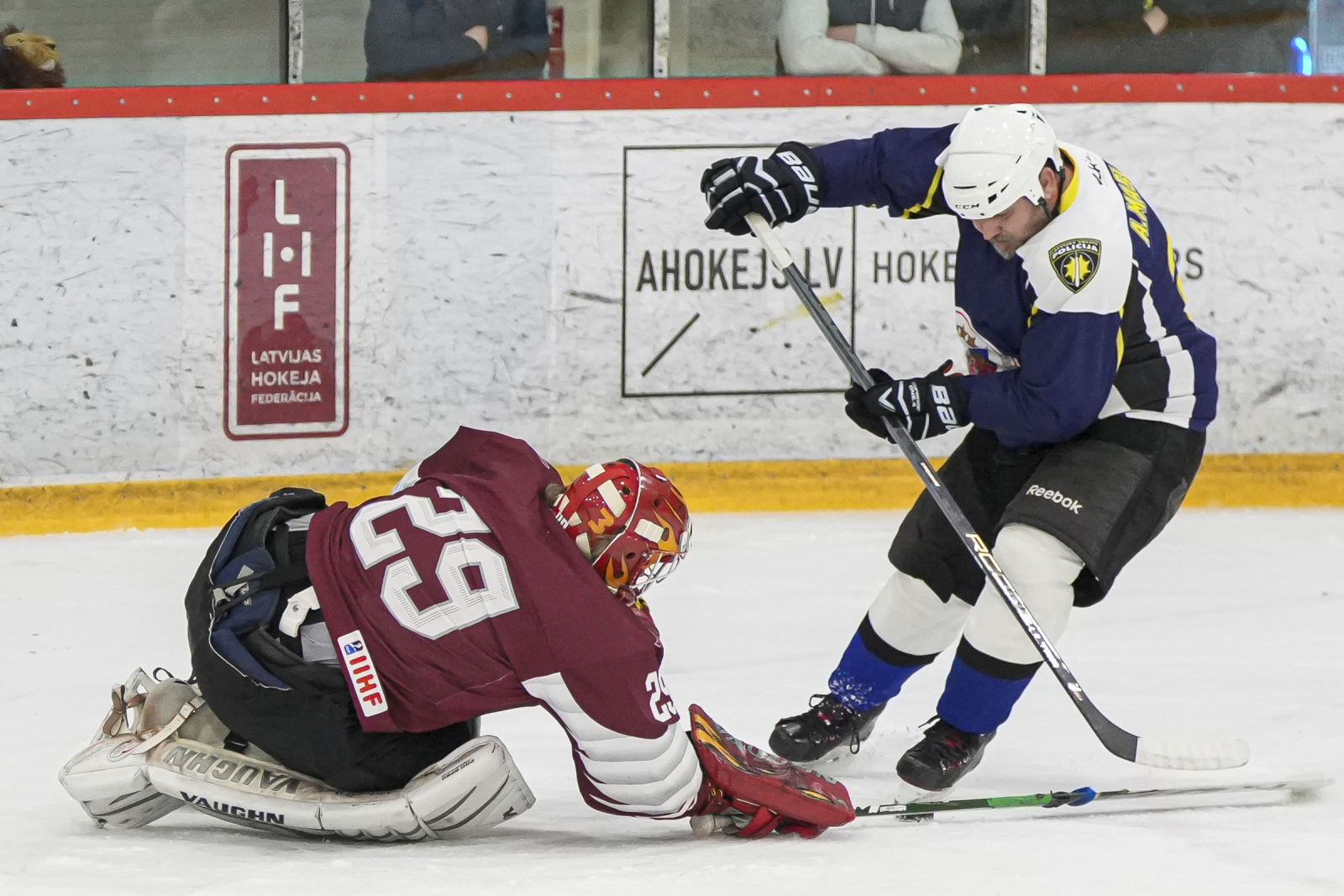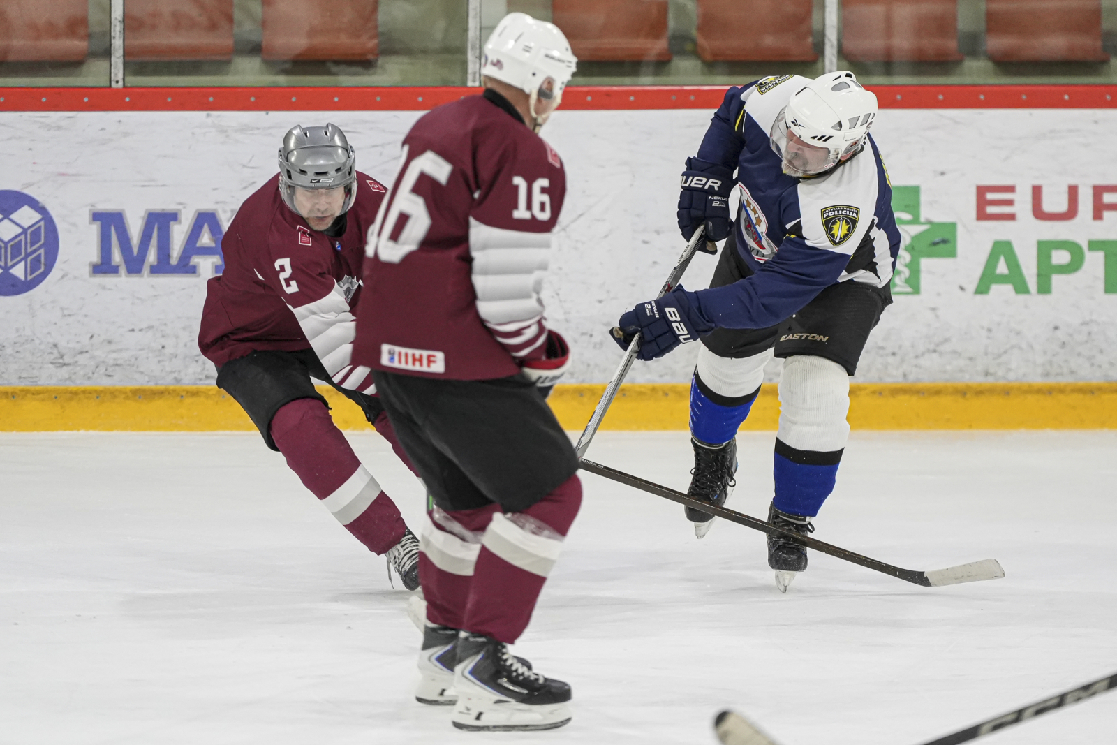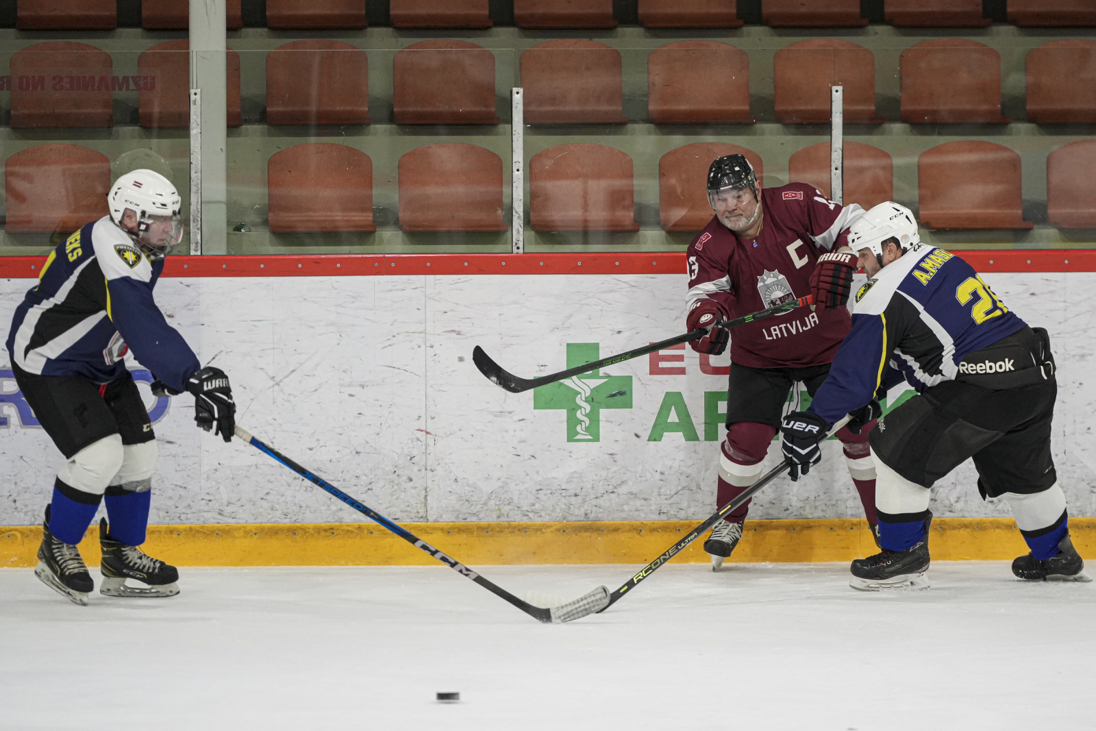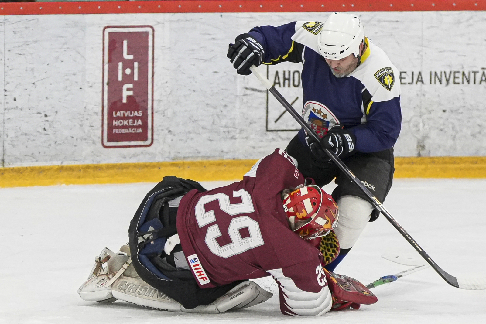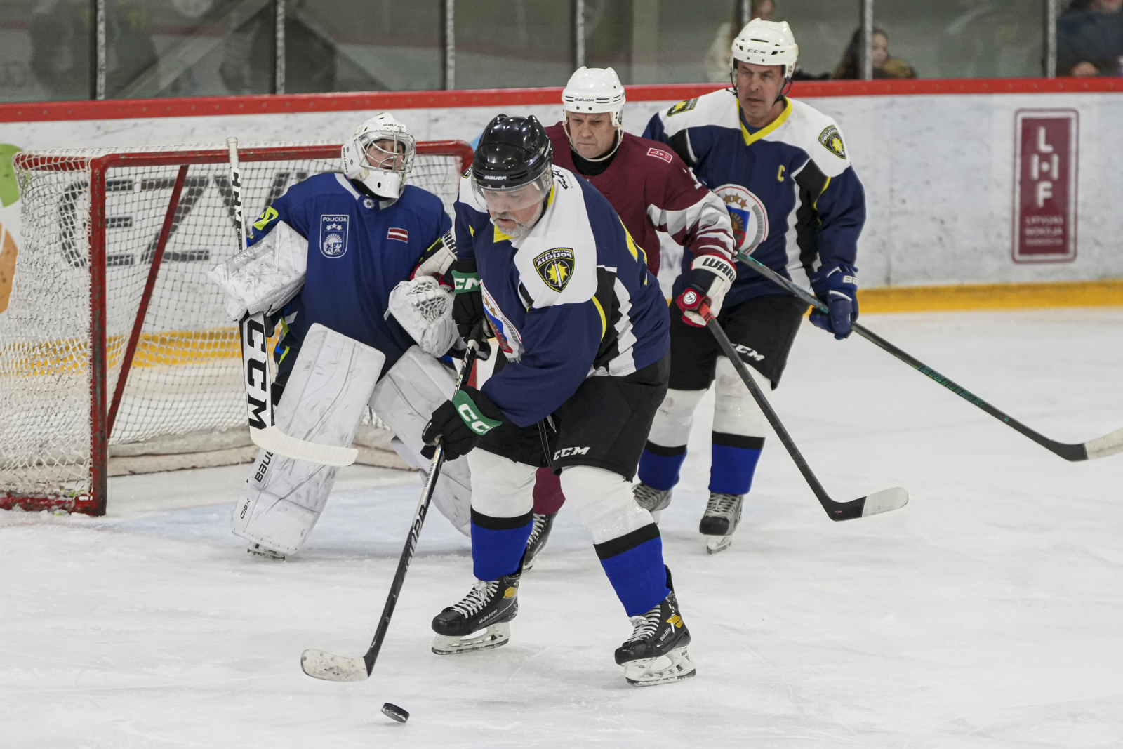 Piektdien, 20. martā, plkst. 15:45 “Volvo SC” ledus hallē norisinājās draudzības spēle, kur nūjas krustoja Latvijas veterānu +55 izlase un Policijas veterānu komanda.