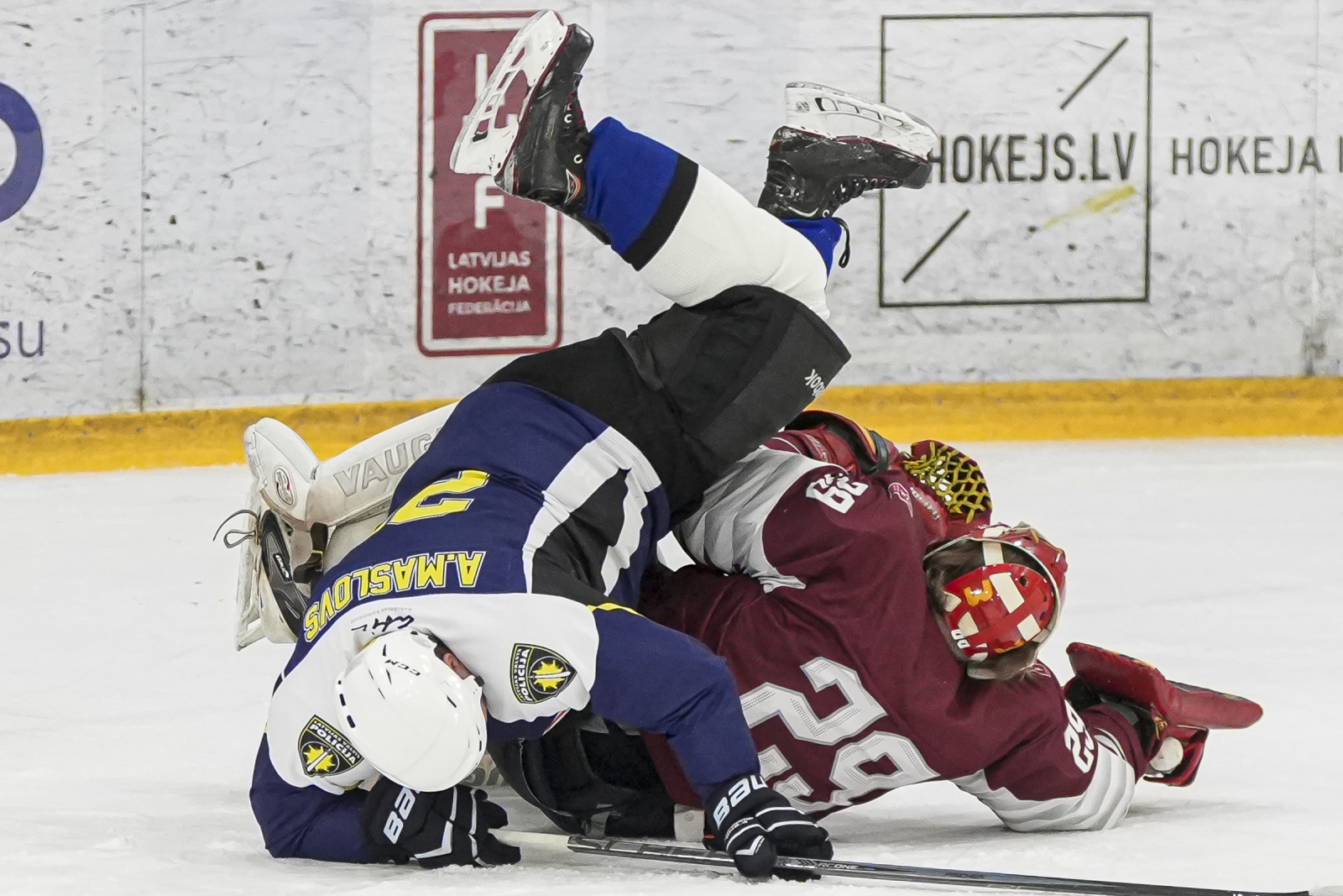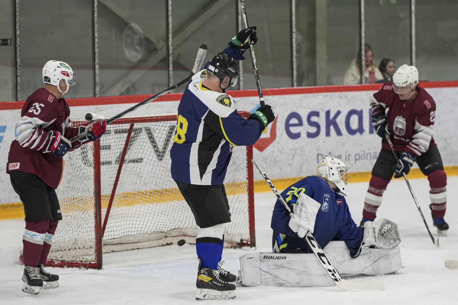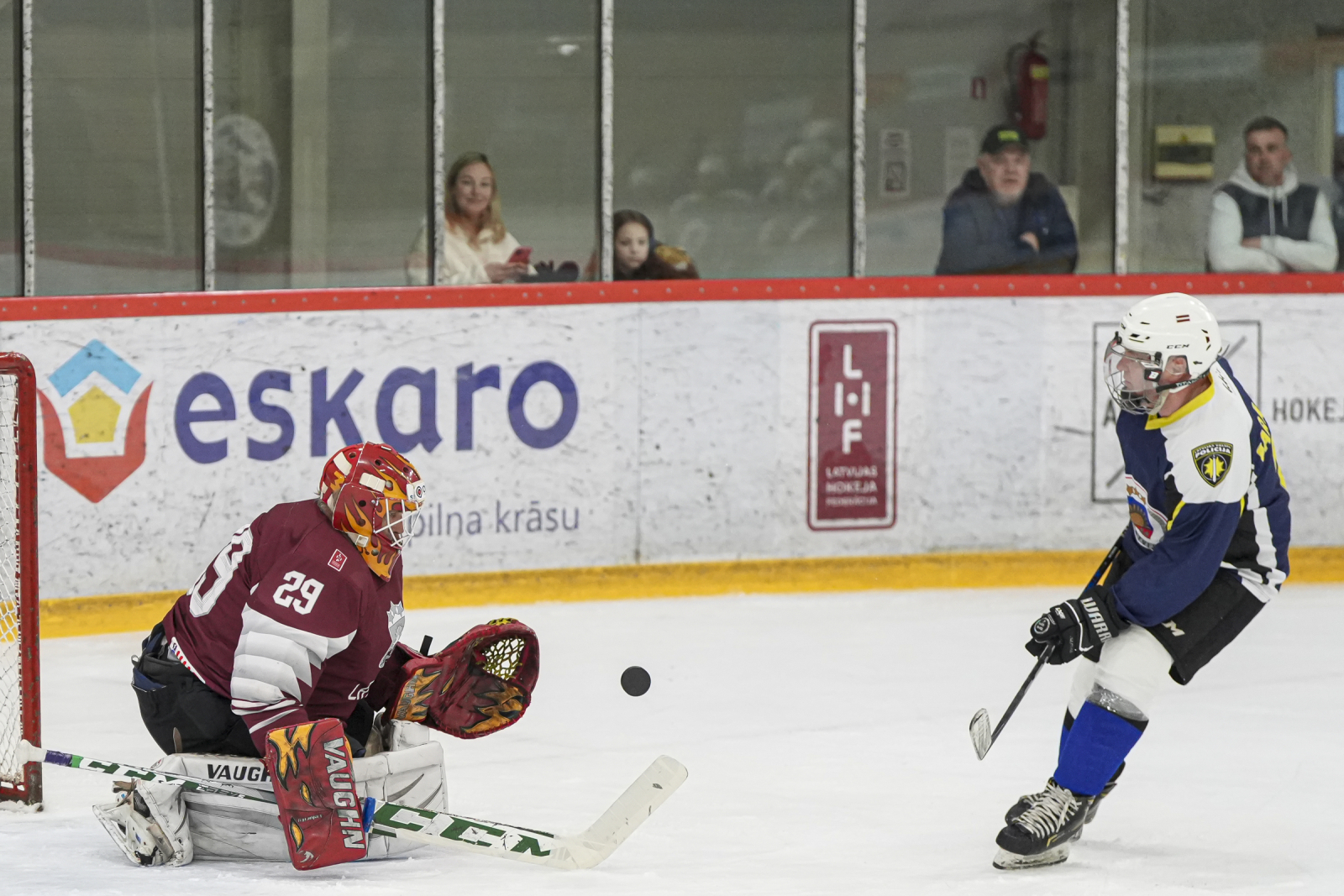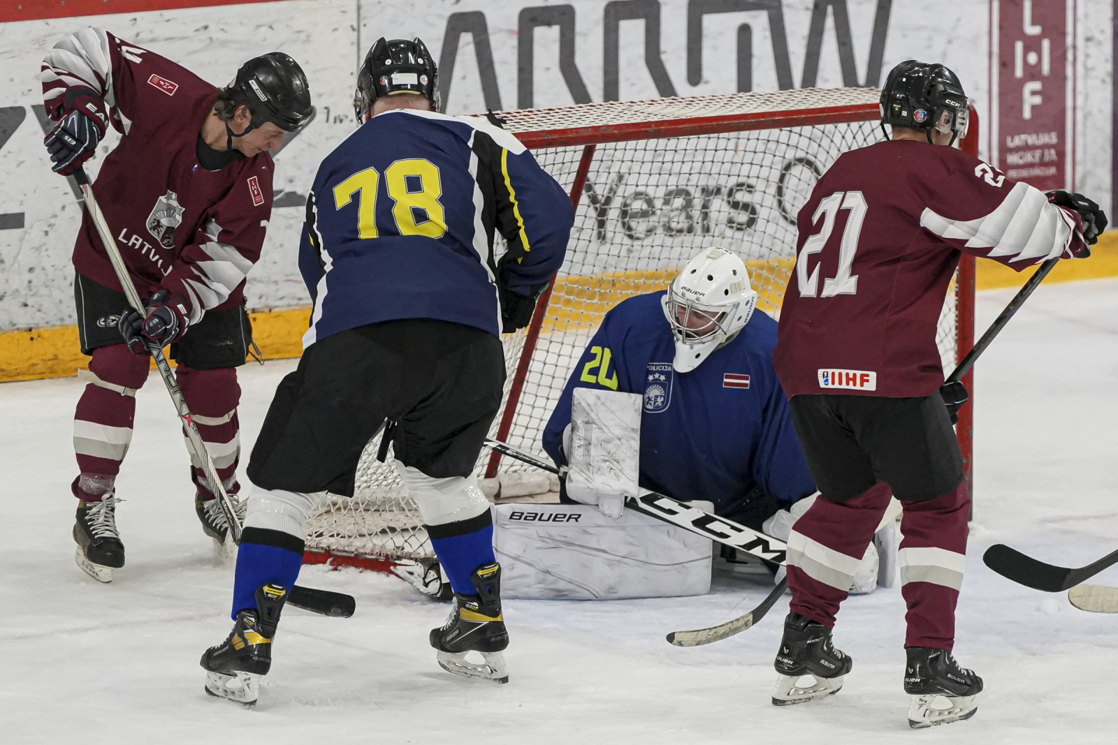 Piektdien, 20. martā, plkst. 15:45 “Volvo SC” ledus hallē norisinājās draudzības spēle, kur nūjas krustoja Latvijas veterānu +55 izlase un Policijas veterānu komanda.