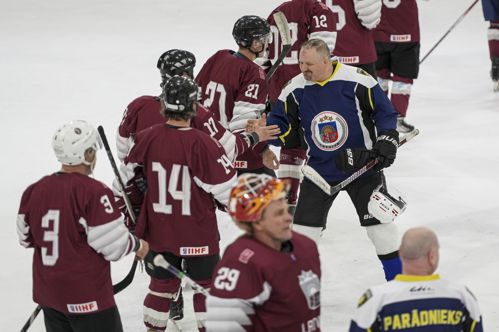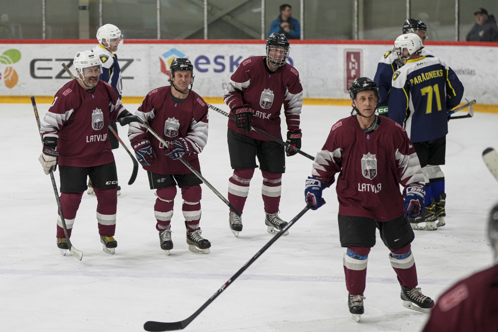 Uz ledus norisinājās spraiga, bet korekta draudzības spēle, kurā abām komandām bija iespējas demonstrēt savas prasmes. Latvijas veterānu izlase pārliecinoši uzvarēja ar rezultātu 11:2.