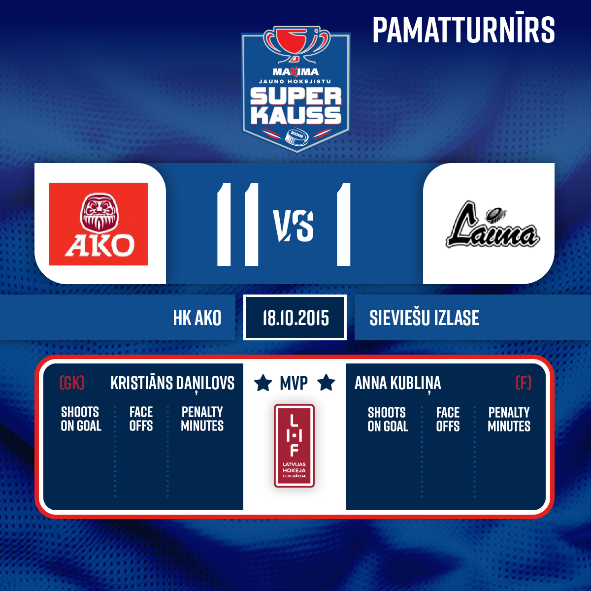 - 36:292.PVārti vairākumā#11 Andrejs BĒRZIŅŠPiespēles: #12 Mareks BIRZĀKS, #55 Daniels ZALAMANISVārti gūti vairākumā +1