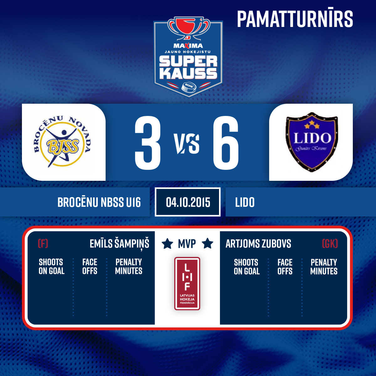 - 37:252.PVārti#14 Aleksandrs BIŠKINSPiespēles: #24 Patriks OZOLS, #10 Rihards LIĢIS