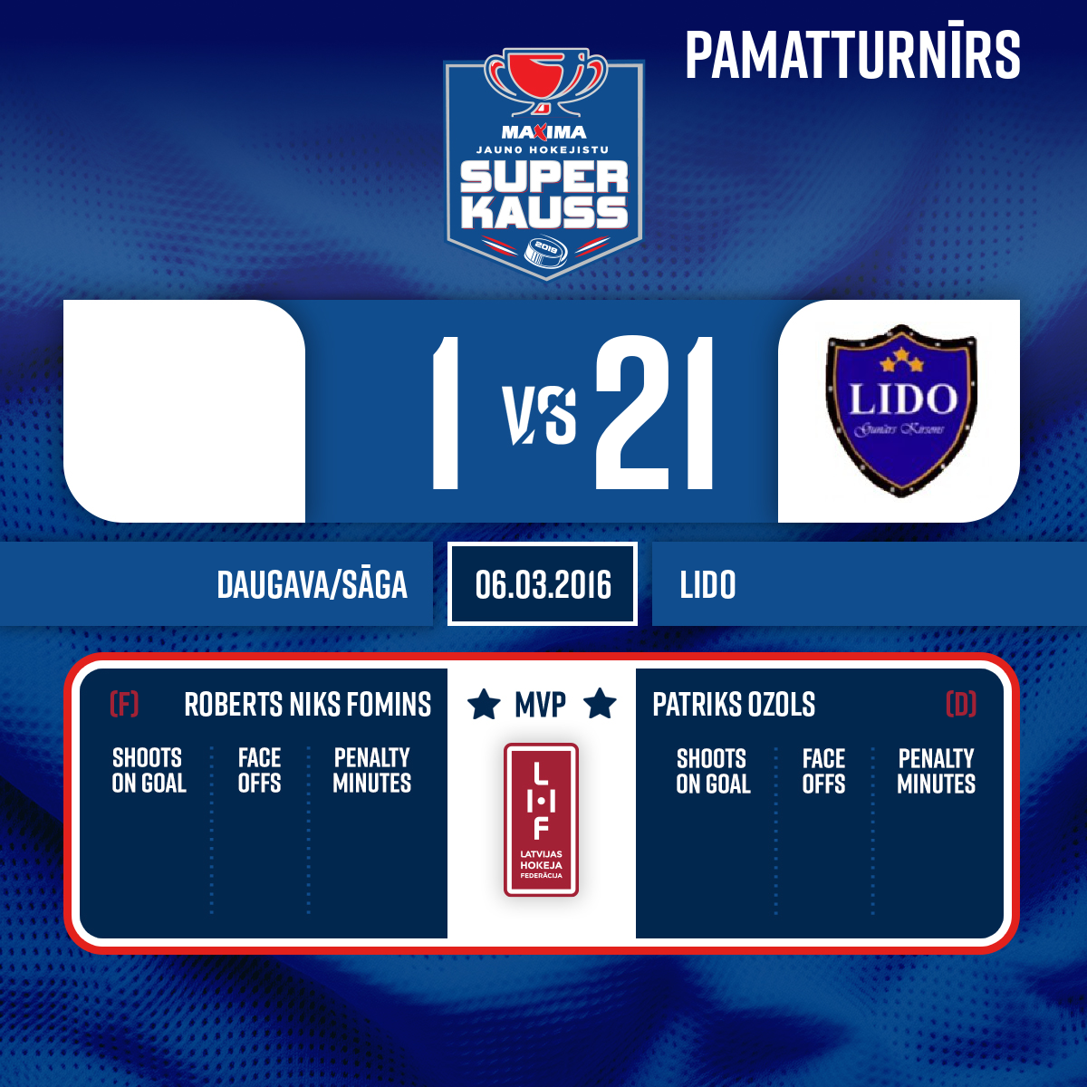 - 14:571.PVārti#10 Rihards LIĢISPiespēles: #16 Miks TUMĀNOVS, #79 Ņikita MATEIKO