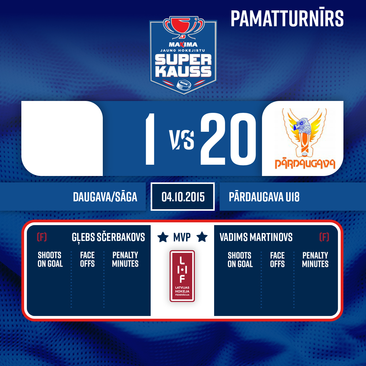 - 16:281.PVārti vairākumā#4 Vadims MARTINOVSPiespēles: #99 Rolands SMILŠARĀJS, #77 Artūrs BOROVIKOVS
