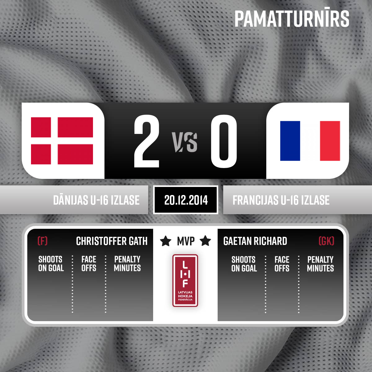 - 20:001.PMetieni pa vārtiem: DEN - 10; FRA - 1