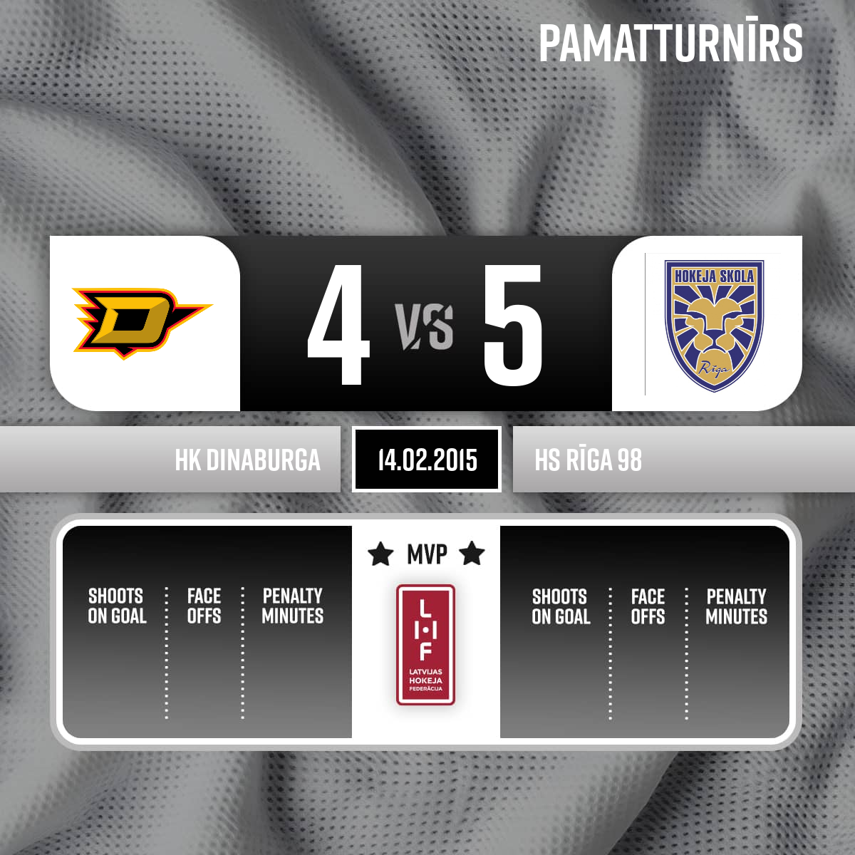 - 26:312.PVārti vairākumā (+2)#17 Renāts VABIŠČEVIČSPiespēles: #8 Andrejs FJODOROVS, #27 Dmitrijs FUŅIKOVSVairākumā +2