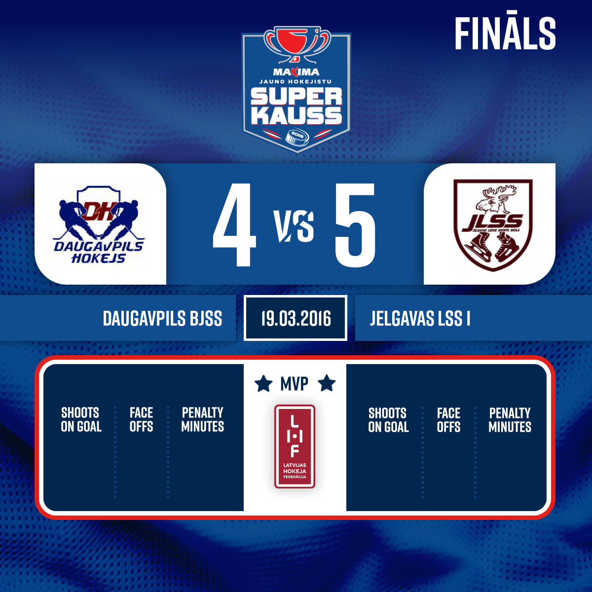 - 45:003.PSpēles labākie spēlētāji: Daugavpils BJSS - # 3 Rolans Vasiļjevs, Jelgavas LSS - # 77 Kristers Brauns.