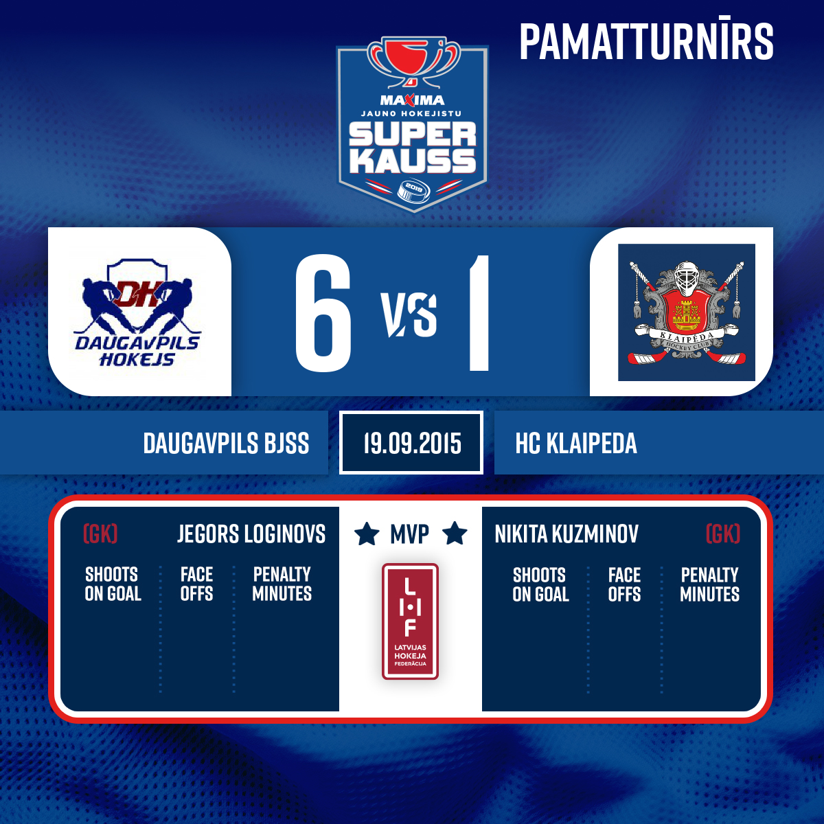 - 45:003.PSpēles labākie spēlētāji: Daugavpils BJSS -#37 Jegors Loginovs, HC Klaipeda - #1 Nikita Kuzminov.