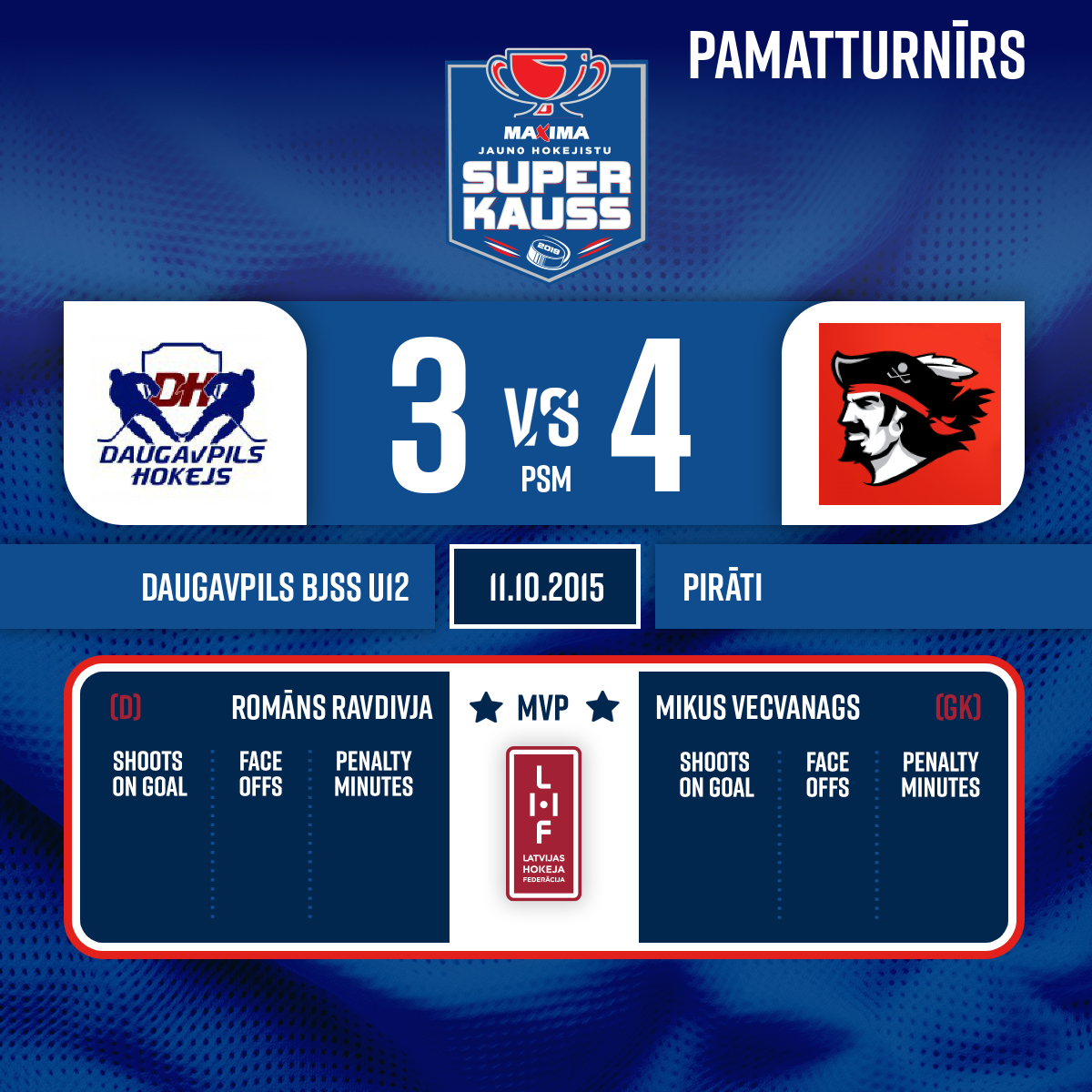 - 45:003.PSpēles labākie spēlētāji: Daugavpils BJSS - #14 Romāns Ravdivija, Pirāti - # 30 Mikus Vecvanags.