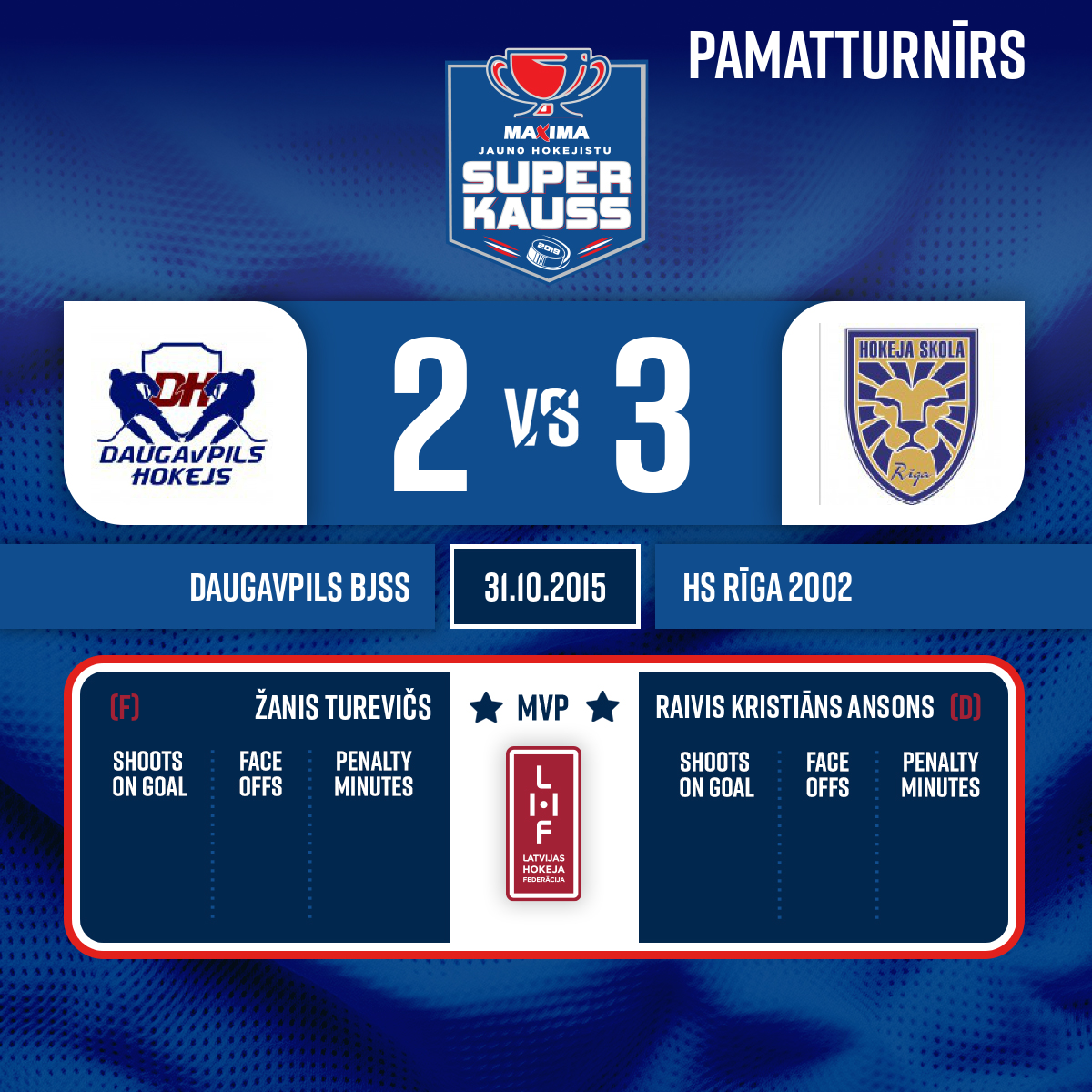 - 45:003.PSpēles labākie spēlētāji: Daugavpils BJSS - #68 Edijs Grigorjevs, HS Rīga 2002 - #35 Raivis Kristiāns Ansons.