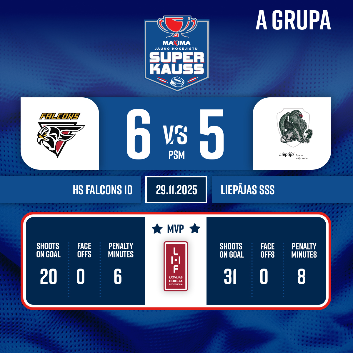 #72 Pēteris POGIŅŠPiespēles: #10 Jorens ŠMATS#25 Matīss BERGS5:5VV1, 56:24