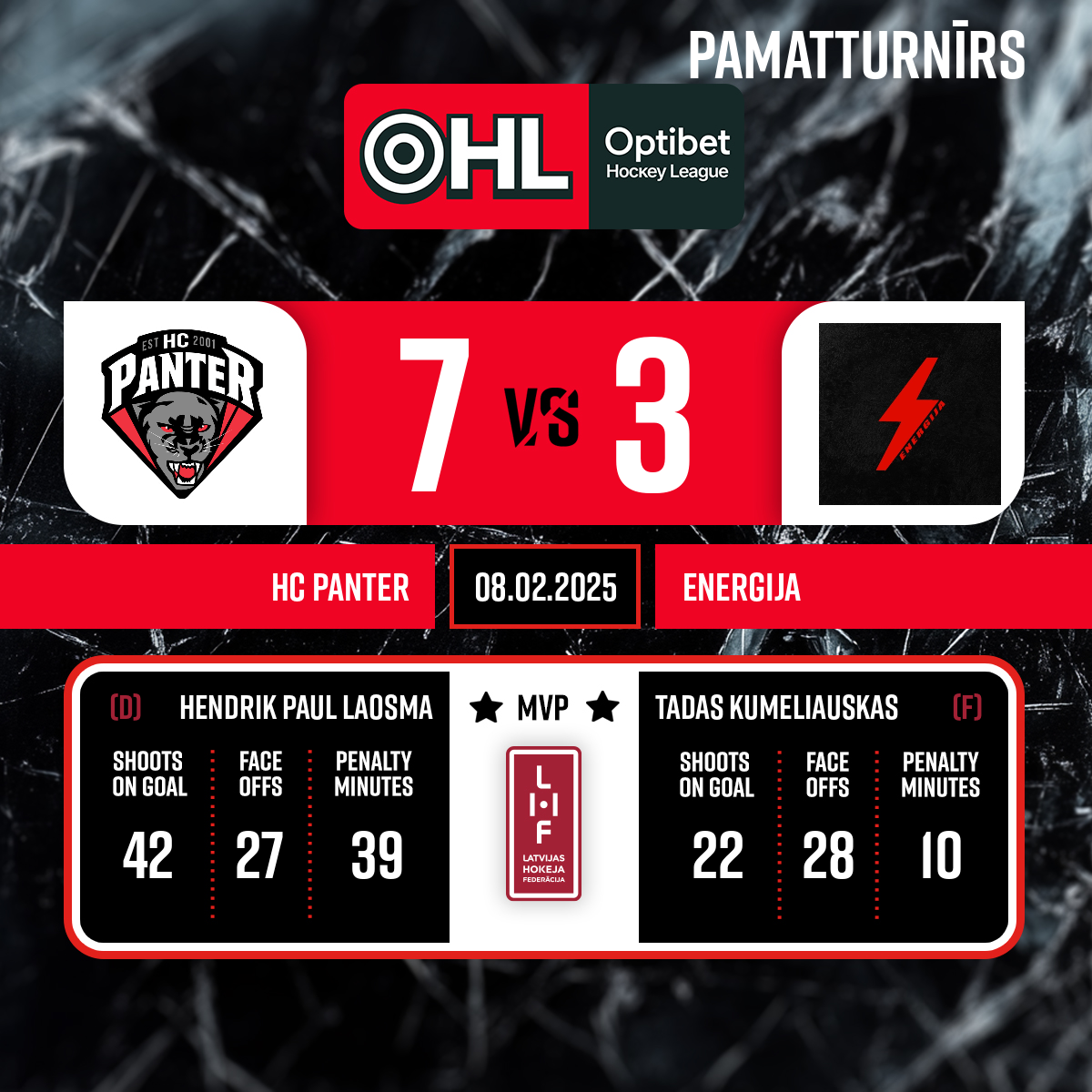 - 60:003.PBest player of team Energija number 71 Tadas Kumeliauskas Best player of team HC Panter number 5 Hendrik Paul Laosma