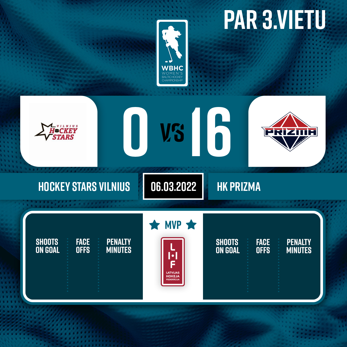 - 45:003.PLabākās spēlētājas: Hockeys Stars Vilnius komandā – Viltaute Jasineviciute #89 SHK Lauvas/Prizma 1 komandā – Milana Veronika Laletina #5