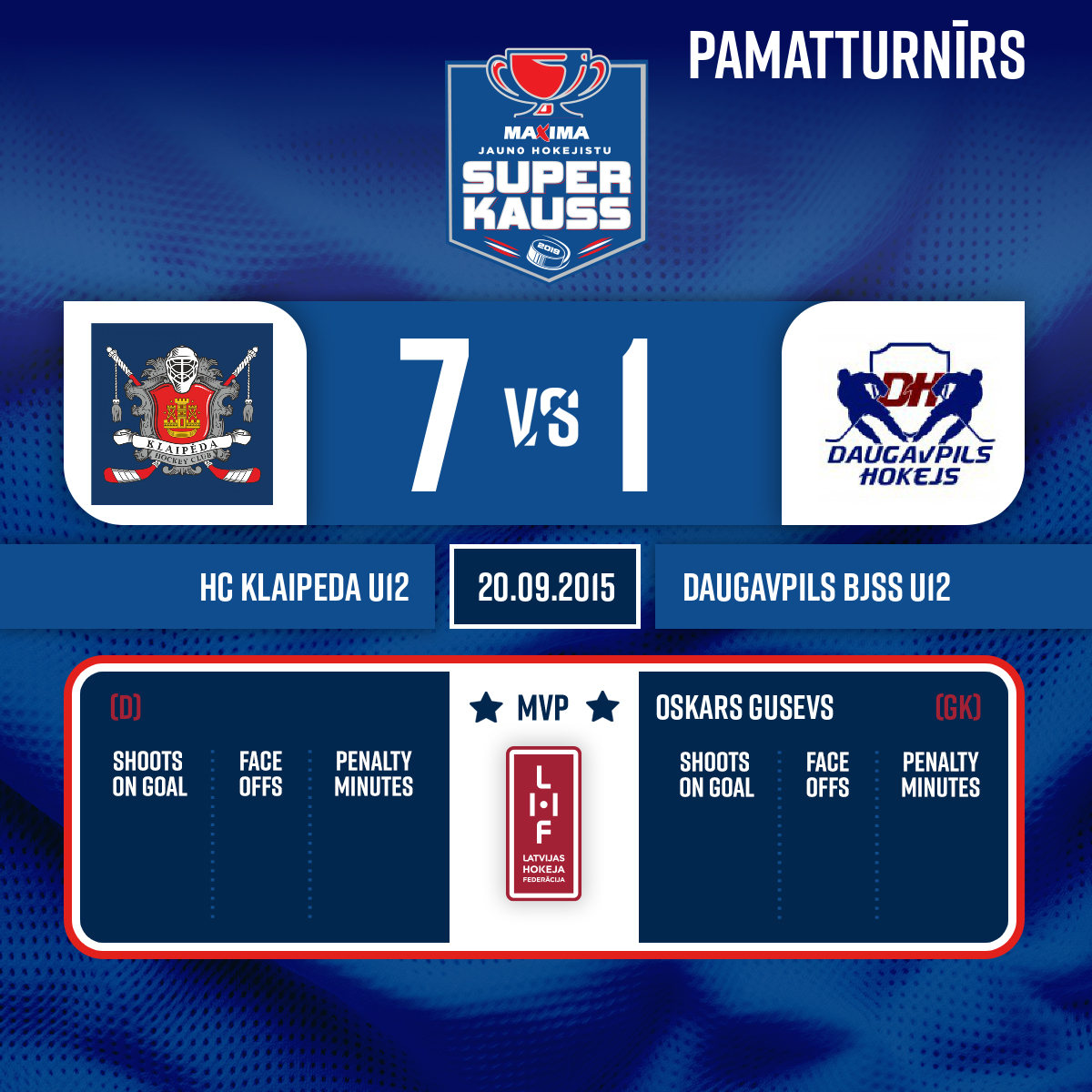 - 45:003.PSpēles labākie spēlētāji: HC Klaipeda - #17 Benas Beličenka, Daugavpils BJSS - #18 Oskars Gusevs.