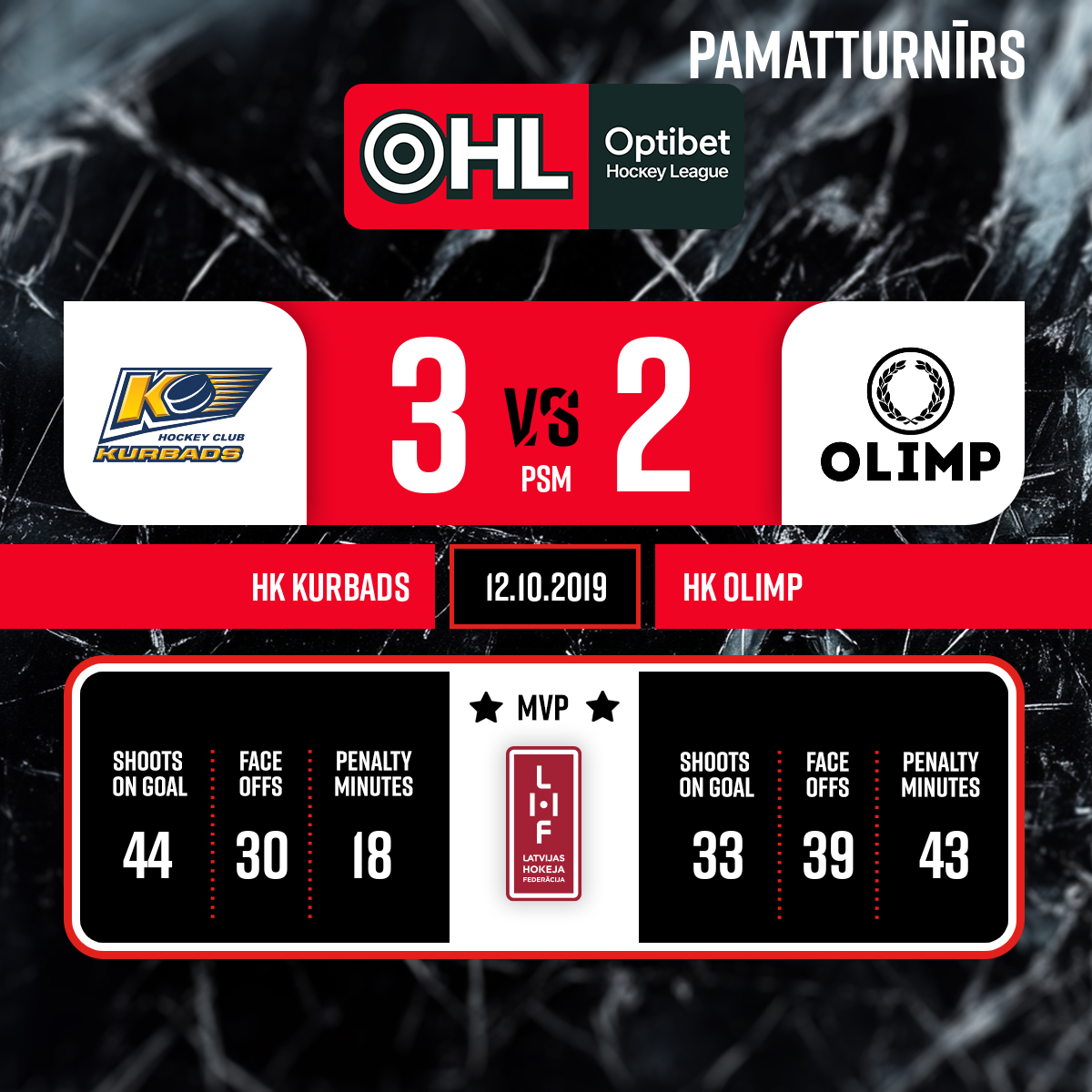 - 65:00PLLabākie spēlētāji: HK Kurbads - #45 Krišjānis RĒDLIHS HK Olimp - #5 Vitaly SHULAKOV