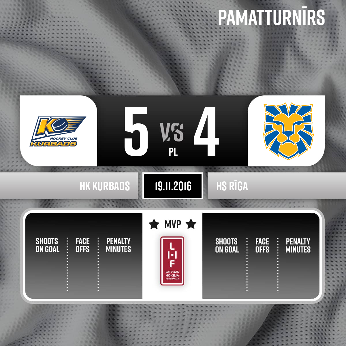 - 60:24PLSpēles labākie spēlētāji; HK Kurbads #12 Toms Bluks HS Rīga #42 Normunds Borskovičs