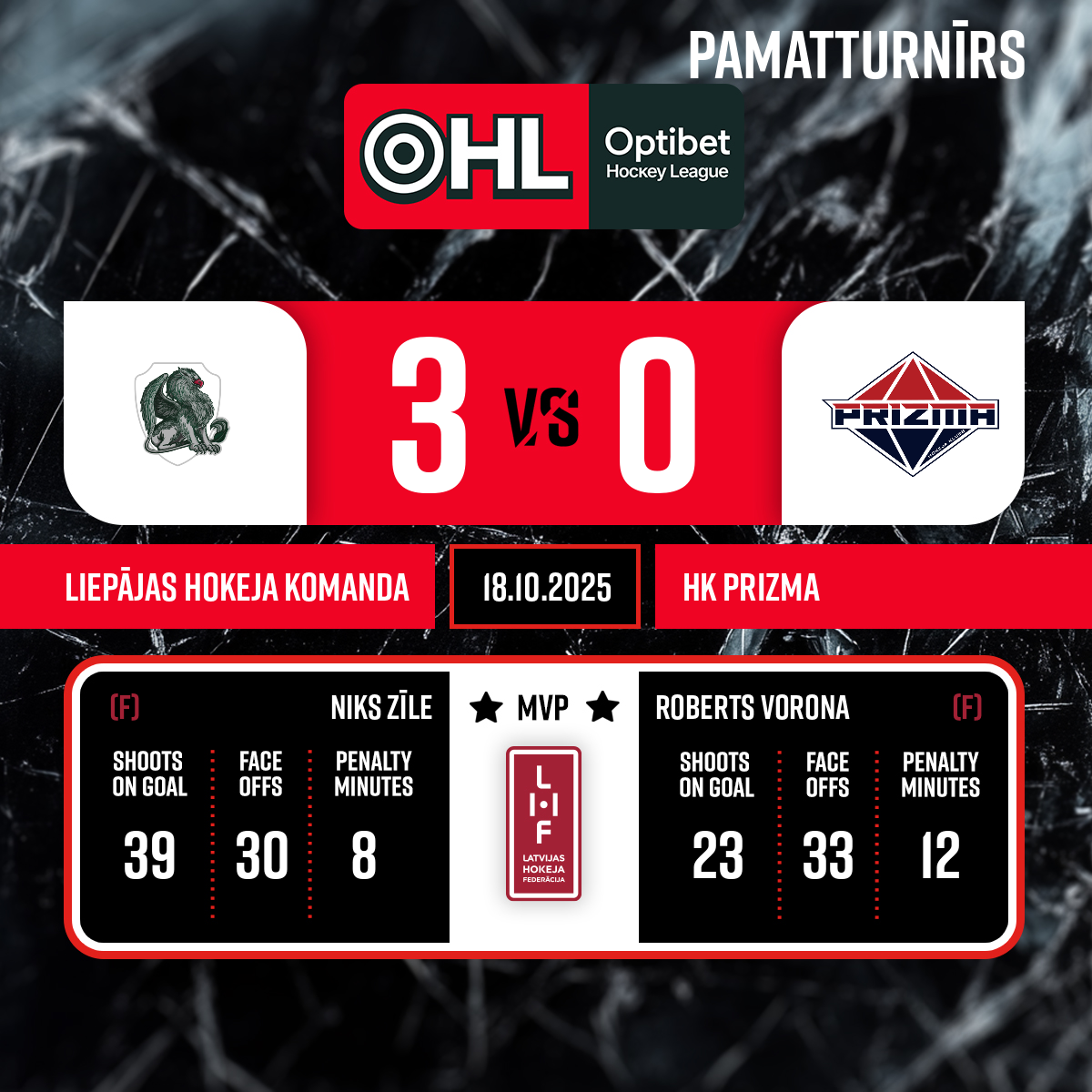 #22 Rinalds VUTKEVIČSPiespēles: #41 Niks ZĪLE#33 Dāniels ANDERSONS2:048:09- 2. Periods