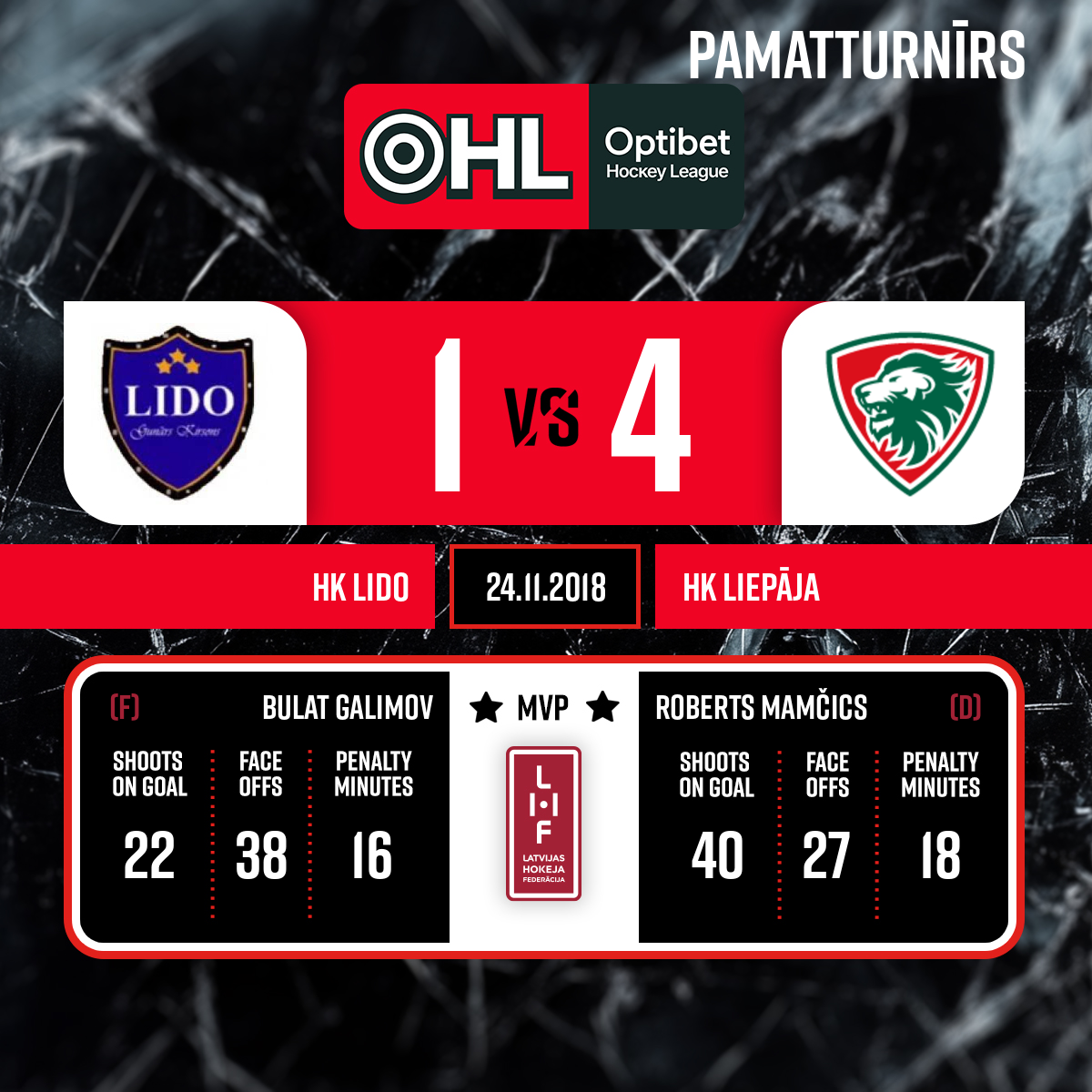 Piespēles: #10 Bruno ZABIS#42 Roberts LIPSBERGS0:3VV2, 21:53- 1. Periods