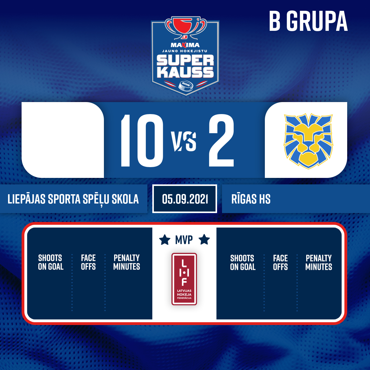 - 17:462.PVārti#21 Roberts FREIDENFELDSPiespēles: #23 Henrijs LAUGALIS, #27 Vladislavs KOZLOVSKIS