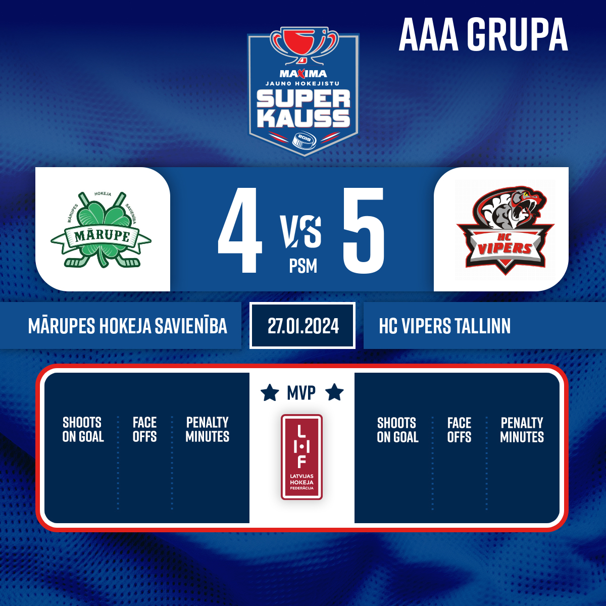 Piespēles: #5 Aleksandrs SUTIRINS#27 Martins BĒRZUPS1:007:10