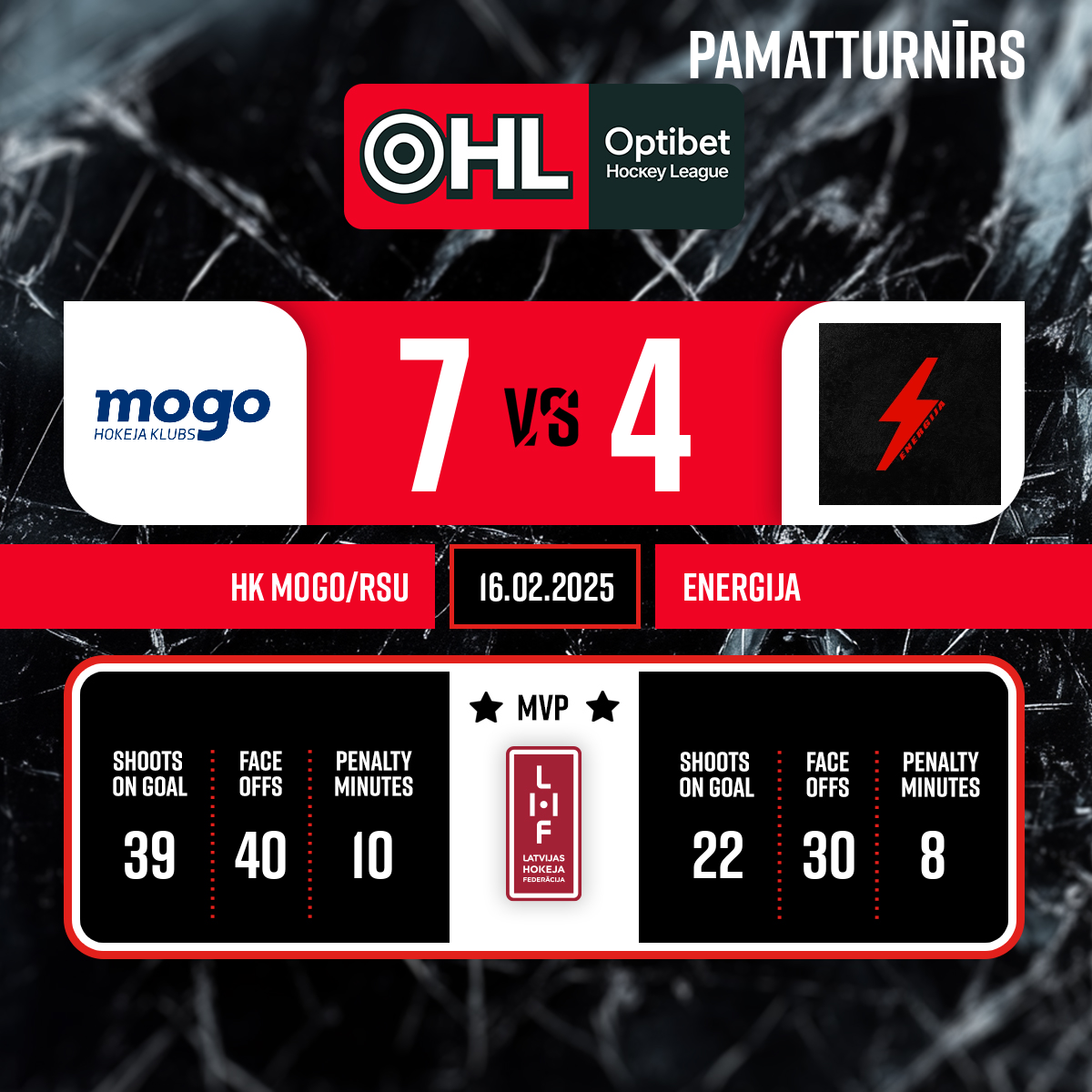 - 60:003.PSpēles labākie spēlētāji: HK MOGO/RSU komandā Nr. 44 SPRUKTS Gatis ENERGIJA komandā Nr. 2 RUMŠEVIČIUS Paulius