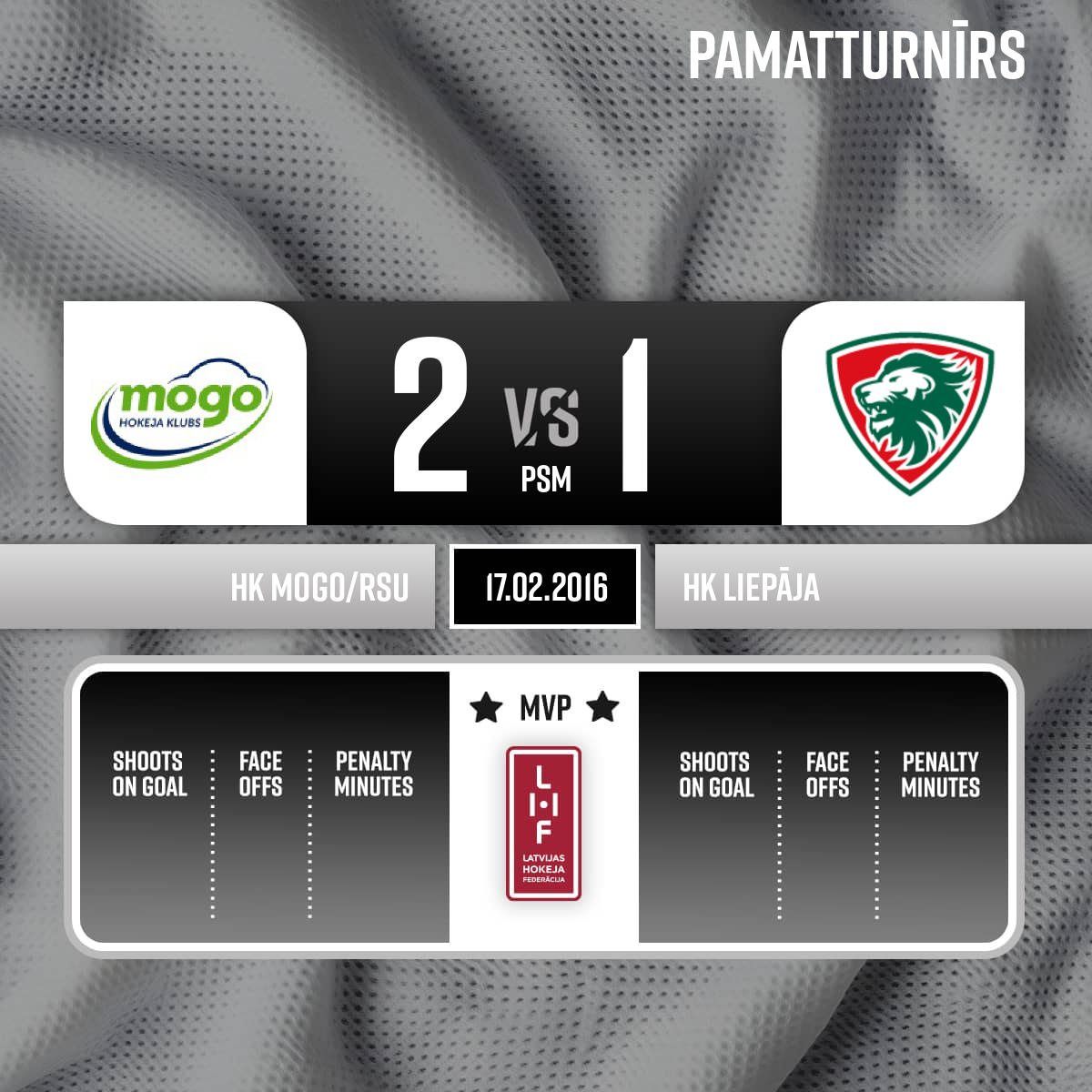 - 65:00PLSpēles labākie spēlētāji: HK MOGO# 17 Elviss Želubovskis HK Liepāja# 31 Vadims Miščuks