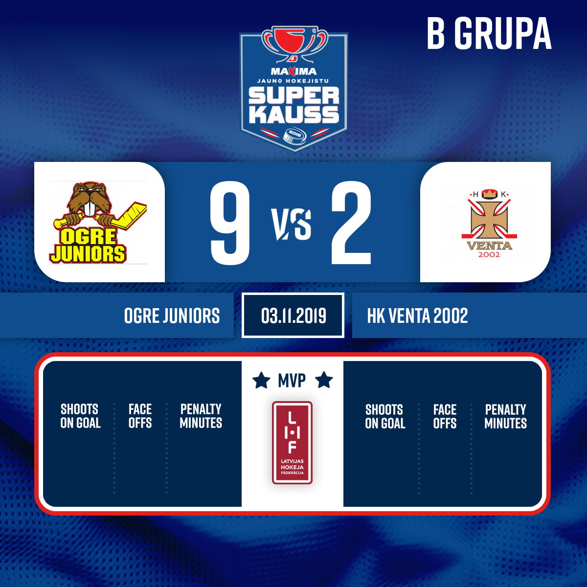 Vārti#9 Deniss ANDREPiespēle: #14 Niklāvs LAUZUMS