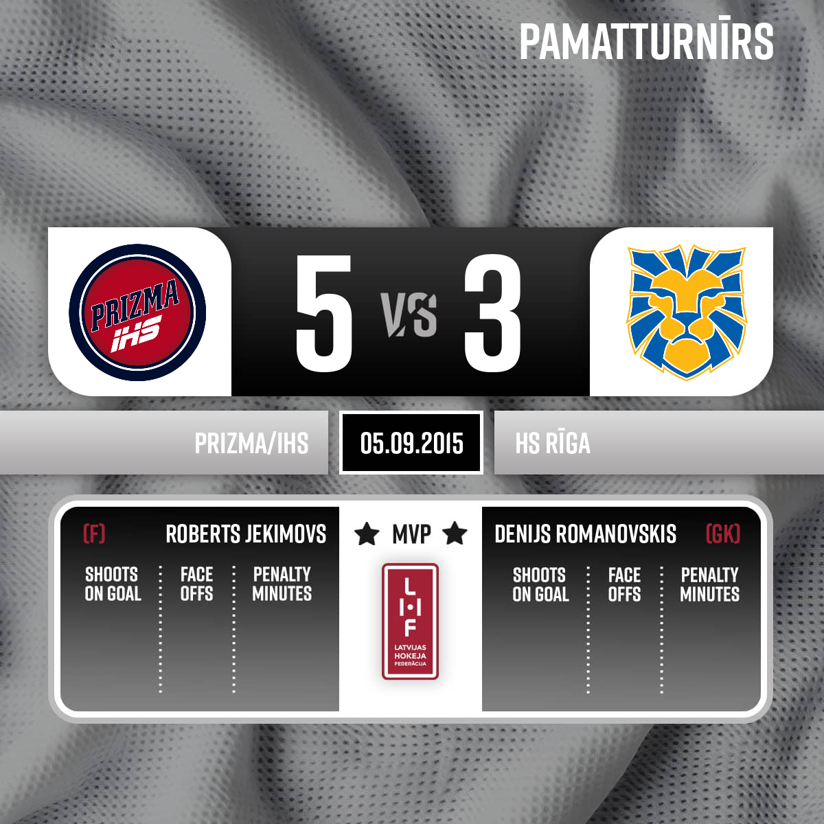 - 60:003.PSpēles labākie spēlētāji: HK Prizma #69 - Roberts Jekimovs, HS Rīga #1 - Denijs Romanovskis