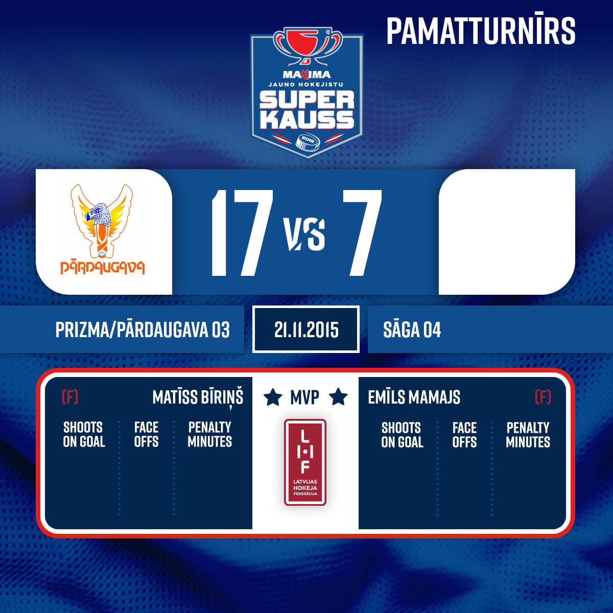 Piespēles: #55 Rinalds VAGALS#37 Alexander STOLBOVOY9:3VM1, 21:09- #41 Niklāvs DAUGAVVANAGSPiespēles: #6 Daniels Jānis ANIS#9 Kaspars ZIEMIŅŠ8:3VV1, 19:52
