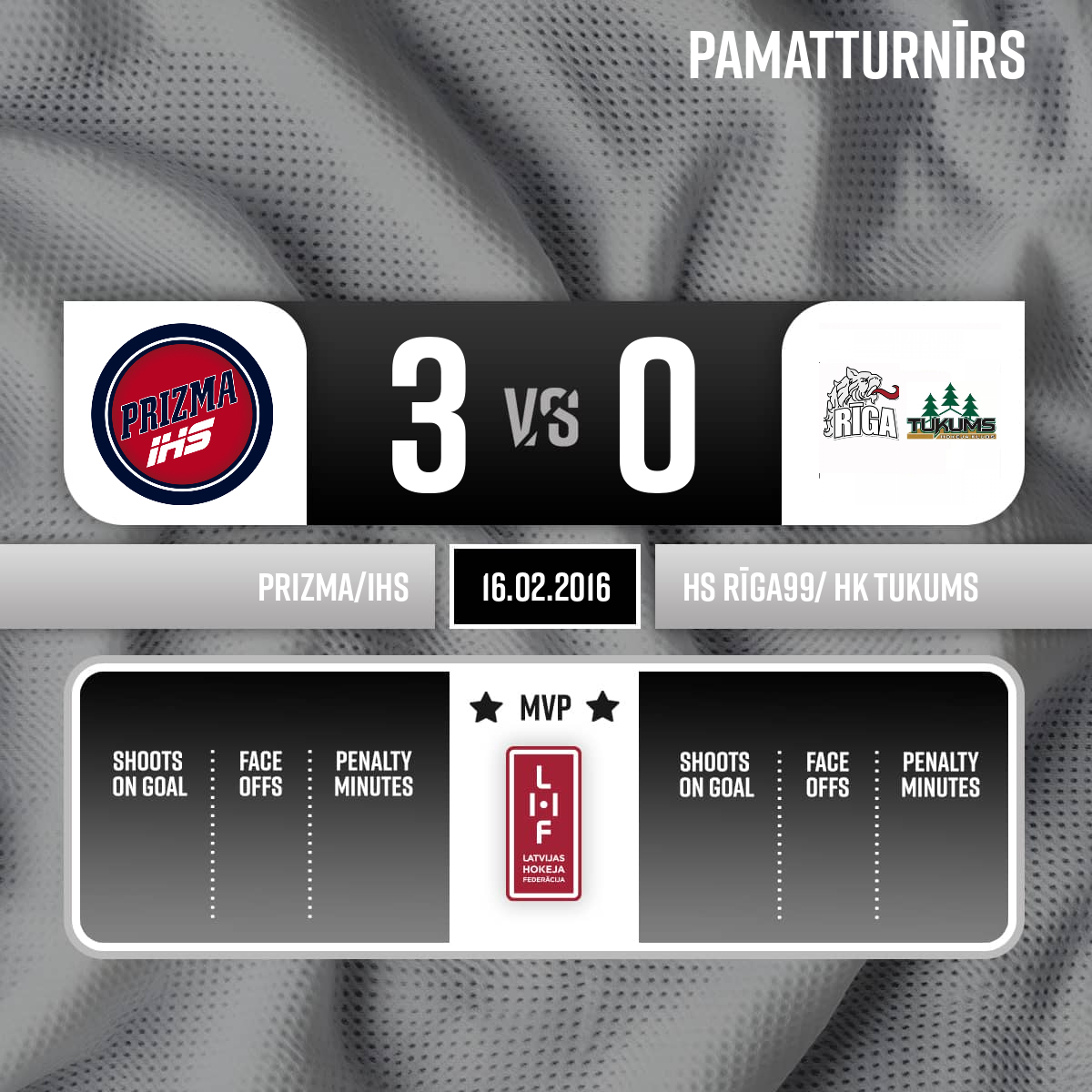 - 60:003.PSpēles labākie spēlētāji- HK Prizma #31 - Kārlis Zakrevskis HS Rīga99 HK Tukums #25 - Rihards Paškausks