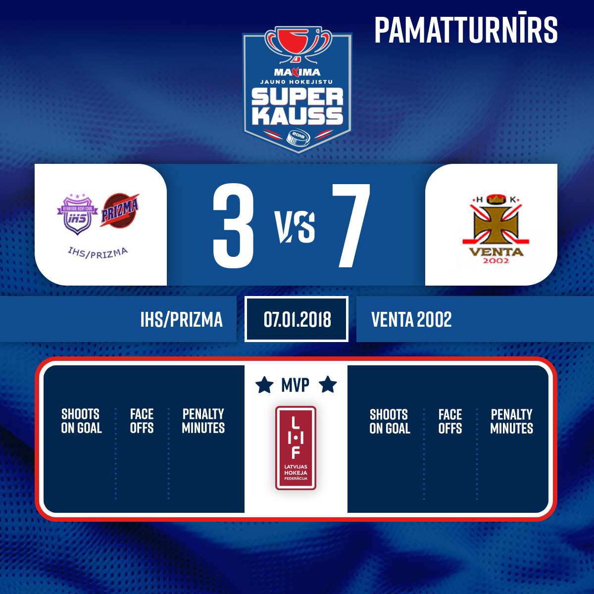 - 22:342.PVārti#25 Rainers RULLERSPiespēles: #12 Edgars Adrians KAZAKS, #27 Kiril BOGDANOV