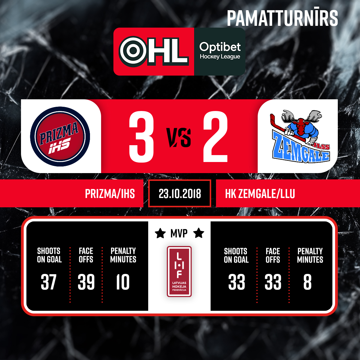 - 60:003.PSpēles labākie spēlētāji : HK Prizma komandā - #62 Aleksejs Širokovs HK Zemgale LLU komandā - #15 Ričards Bernhards