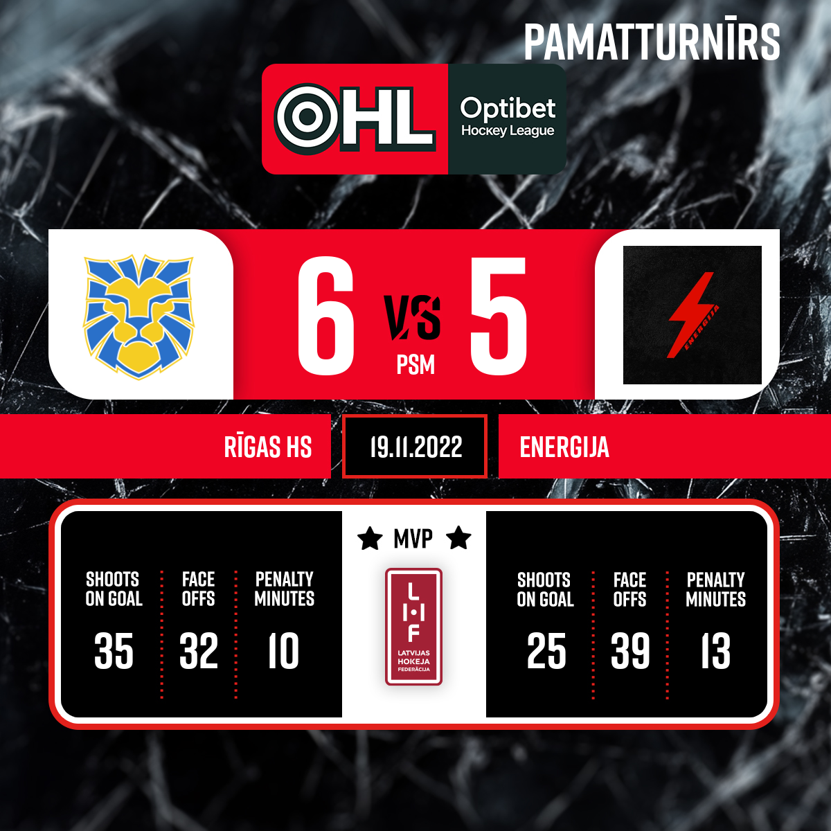 - 65:00PLSpēles labākie spēlētāji: HS Rīga - #17 Vladislavs KONIŠEVS AIRWELL ENERGIJA - #88 Danil TSARKOVSKYI