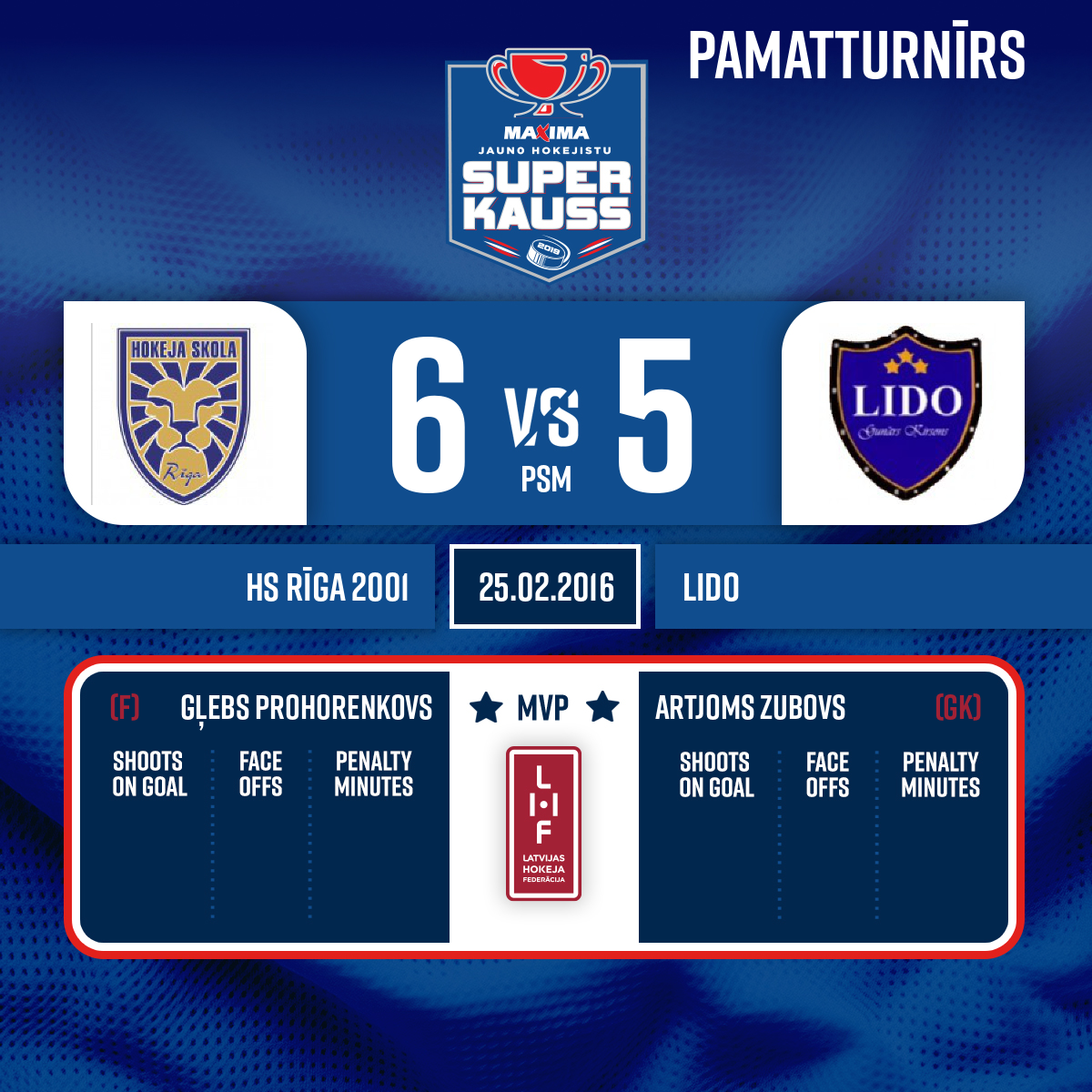 - 11:131.PVārti#28 Gļebs PROHORENKOVSPiespēles: #11 Dominiks MARCINKĒVIČS, #27 Patriks MARCINKEVIČS