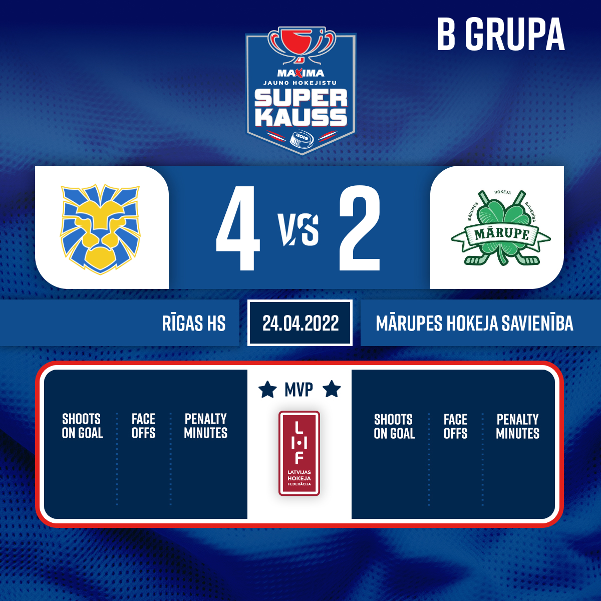 #13 Roberts BINDEPiespēles: #14 Niklāvs LAUZUMS#8 Daniels DEŅISENKO4:2VV1, 28:19- 1. Periods