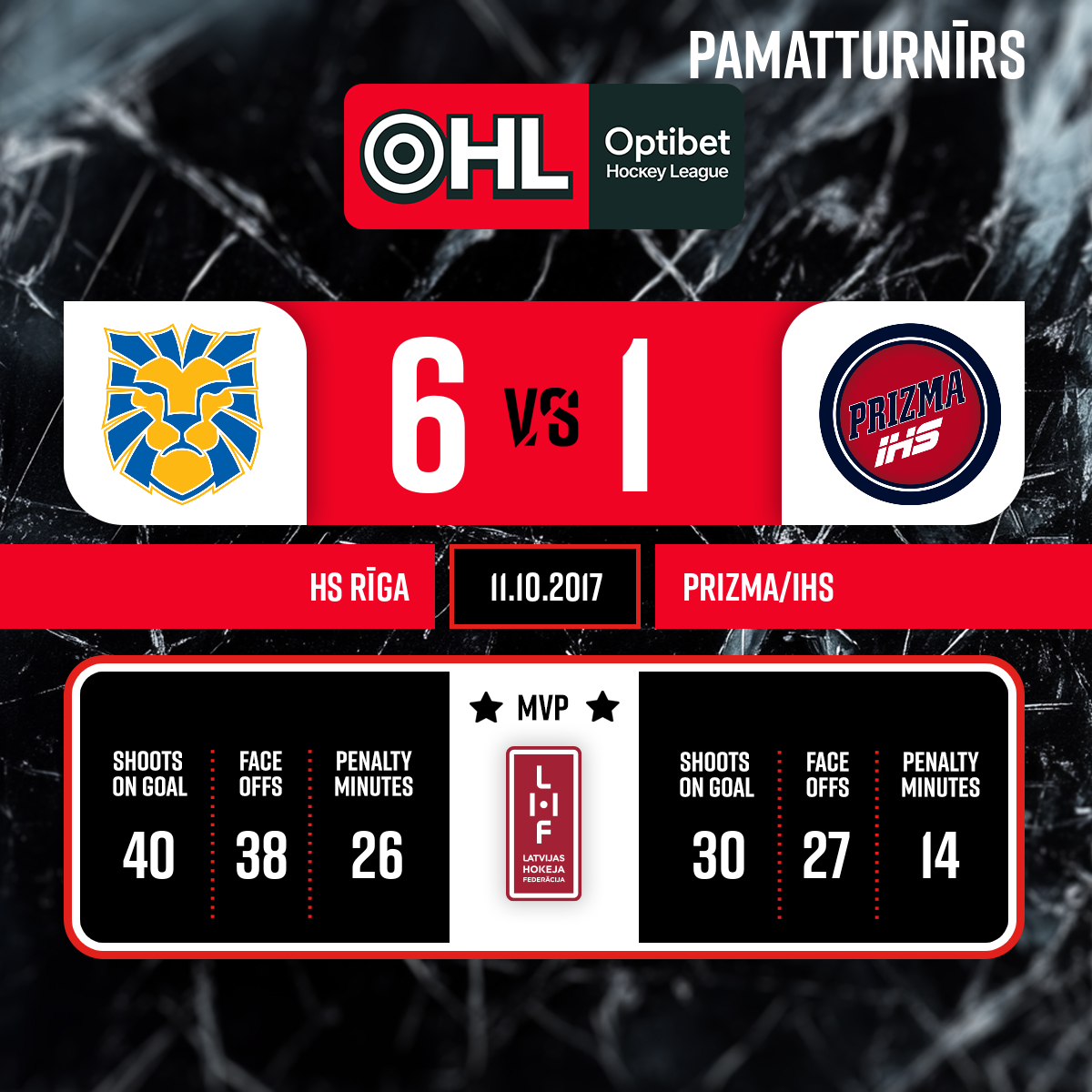 - 60:003.PLabākie spēlētāji: HS Rīga - #13 Grigorijs Holodkovs HK Prizma - #52 Rihards Ķuzis