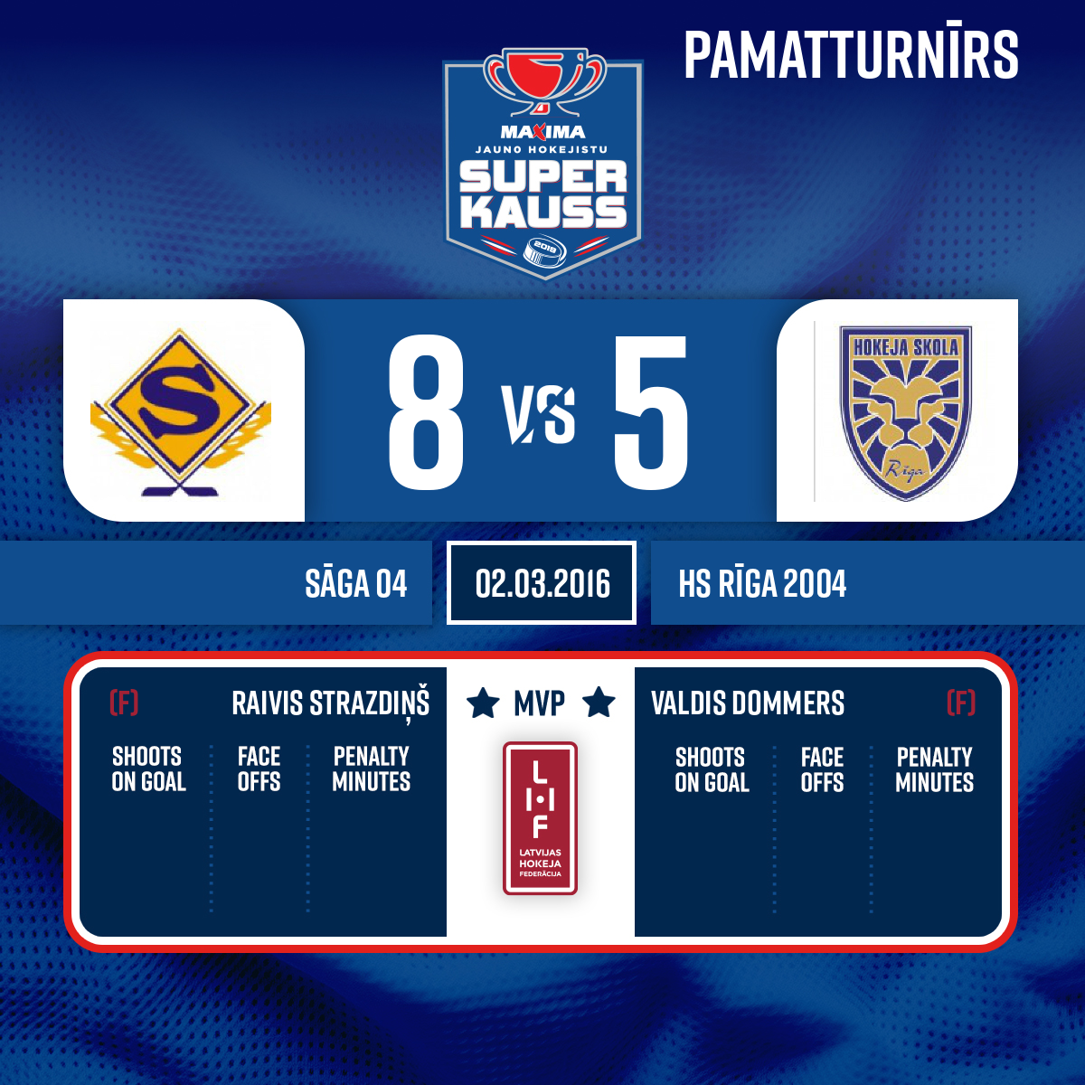 Piespēles: #9 Raivis STRAZDIŅŠ#26 Ernests KRŪMS8:5VV1, 38:09#8 Emīls Luka TOMANS