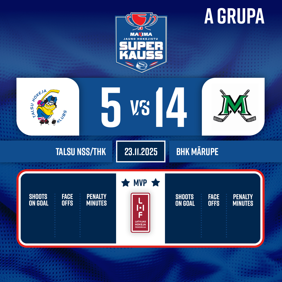 #33 Rainers VUGULSPiespēles: #20 Markuss FREIMANIS#24 Jānis PŪLĪTIS3:7VM1, 28:27