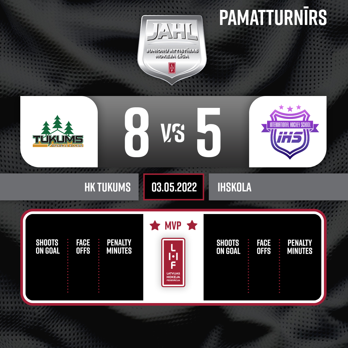 - 43:283.PVārti#15 Gusts JEGOROVSPiespēles: #35 Kārlis PLŪME, #7 Boris BESSMERTNYI