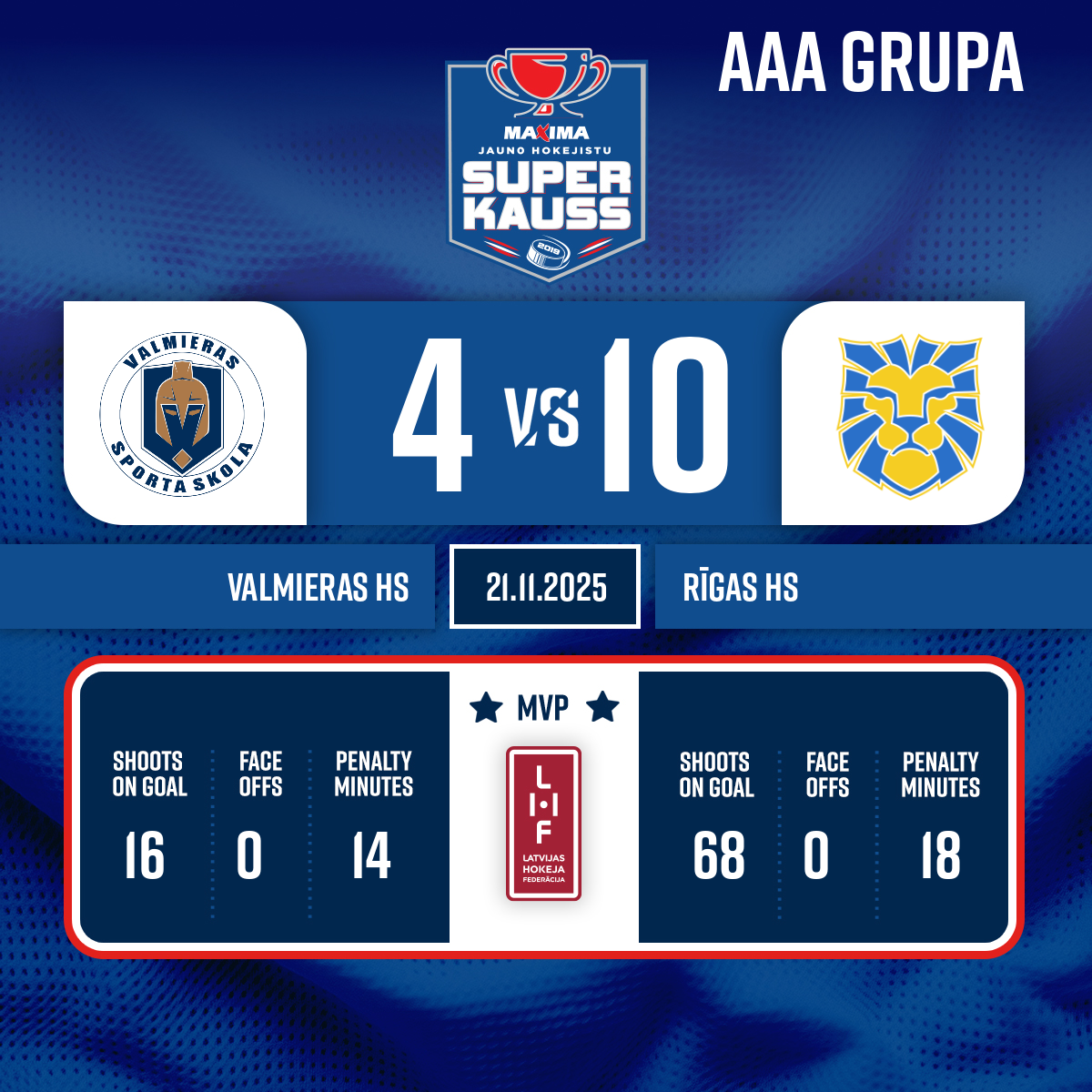 #12 Ralfs Rūdolfs KASPARINSKISPiespēles: #55 Andrejs JEGOROVS#82 Ričards TURNIS4:948:10