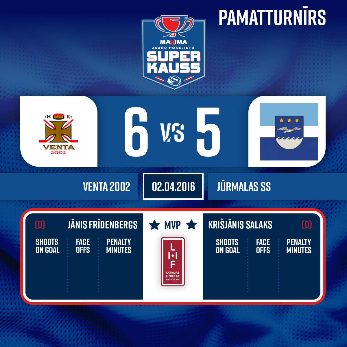 Piespēles: #18 Kārlis AKIMOVS#8 Kristaps KRISTIŅŠ6:5VV1, 40:25#16 Jānis FRĪDENBERGS