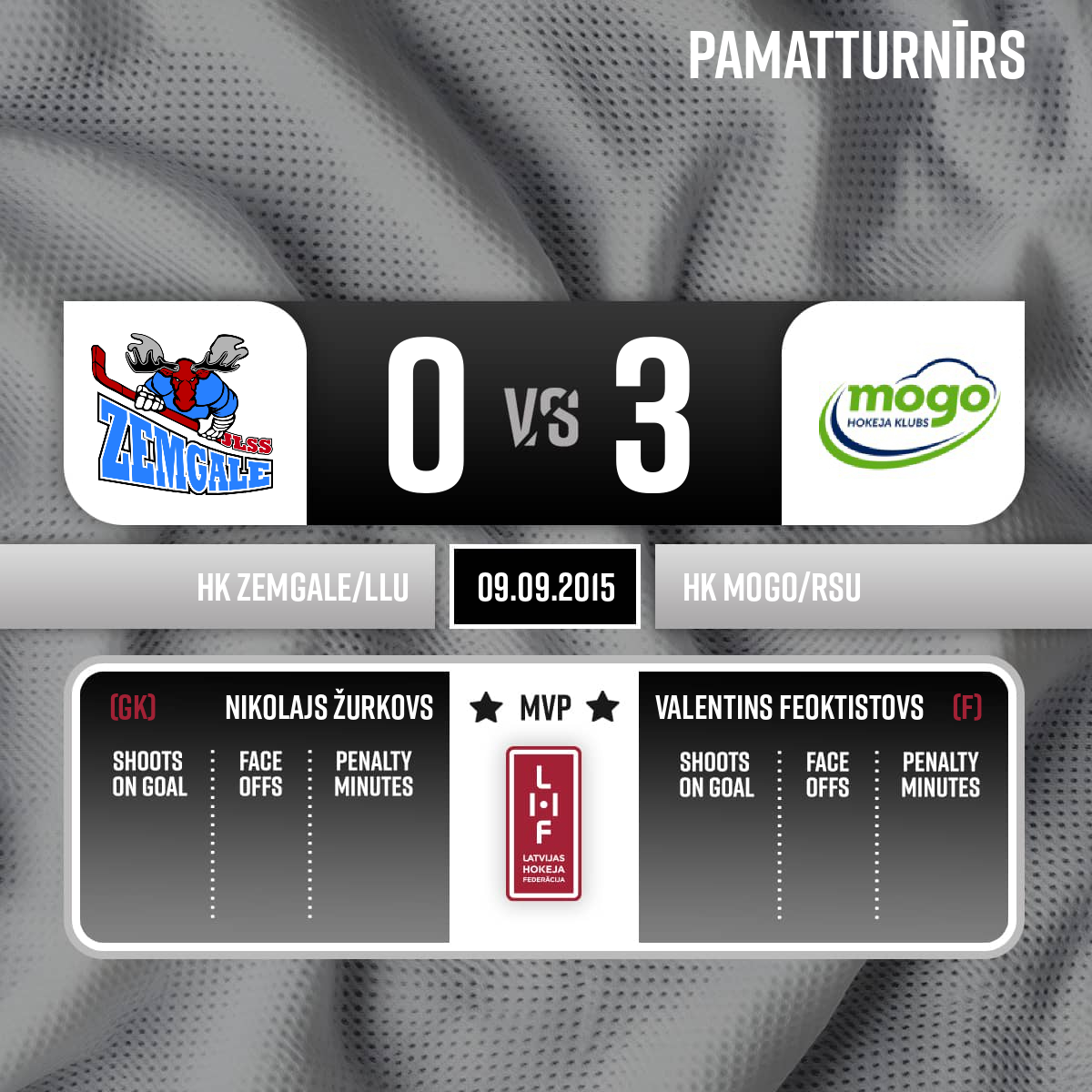 - 60:003.PSpēles labākie spēlētāji: HK Zemgale #24 -Nikolajs Žurkovs un HK Mogo #85 - Valentīns Feoktistovs