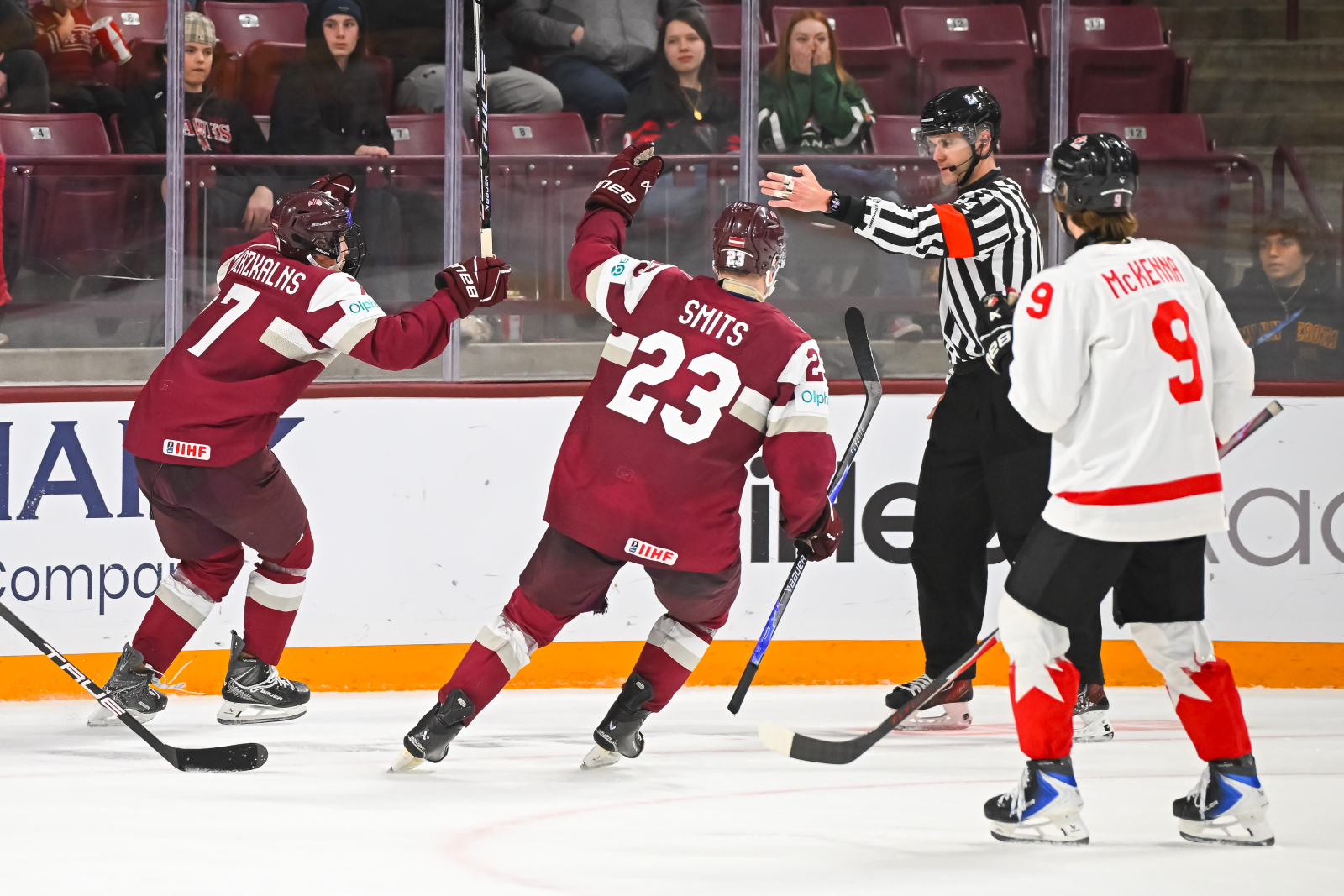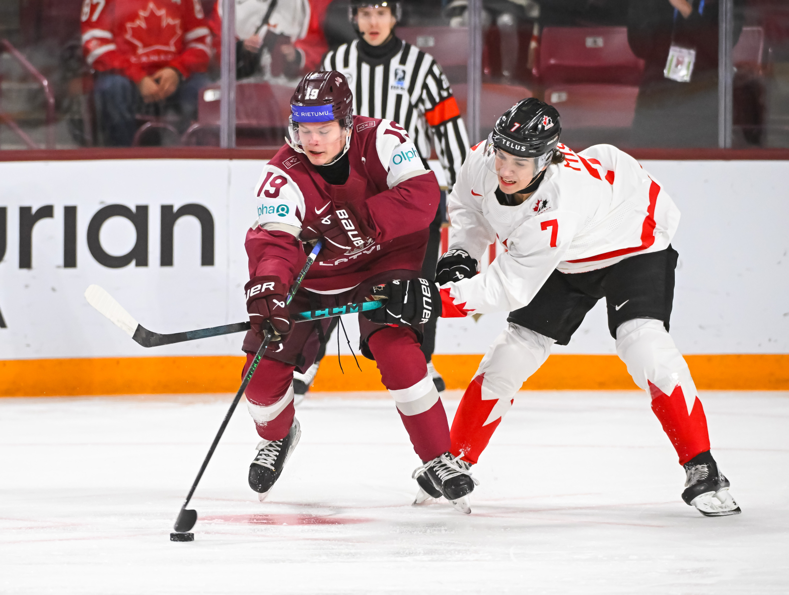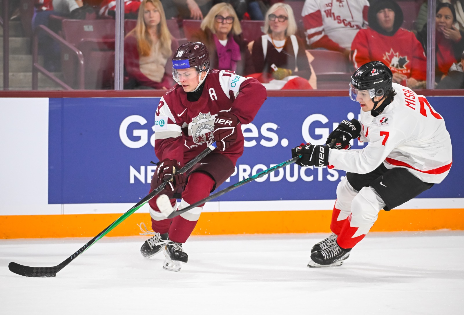 Latvijas U20 hokeja izlase pasaules čempionātā elites divīzijā aizvadīja ļoti cienīgu maču pret galveno favorīti Kanādas izlasi, pamatlaika beigās panākot neizšķirtu un iegūstot punktu turnīra tabulā par zaudējumu papildlaikā ar 1:2.