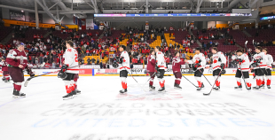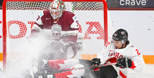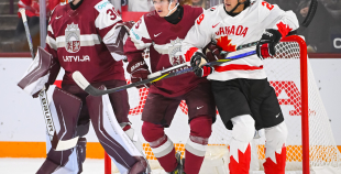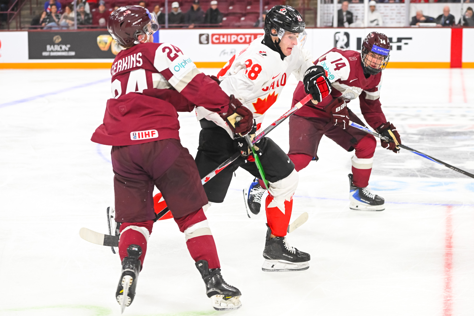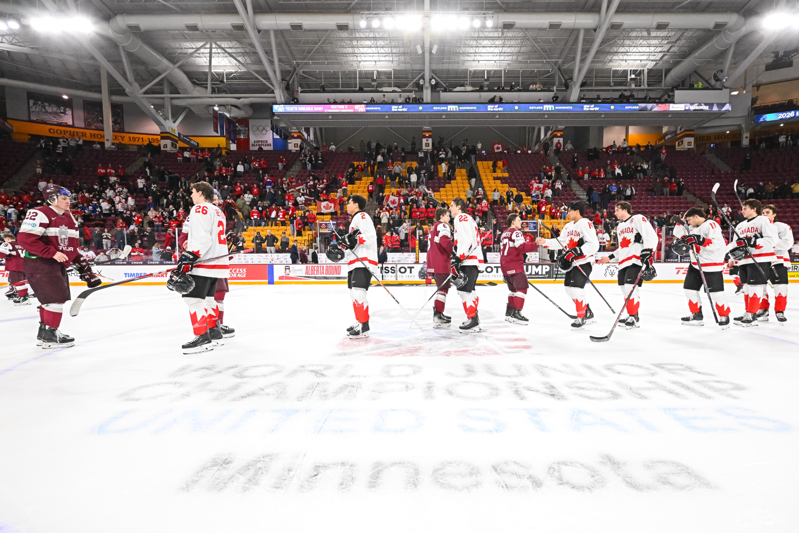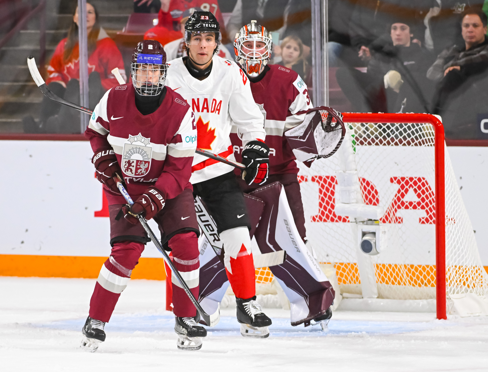 Latvijas U20 hokeja izlase pasaules čempionātā elites divīzijā aizvadīja ļoti cienīgu maču pret galveno favorīti Kanādas izlasi, pamatlaika beigās panākot neizšķirtu un iegūstot punktu turnīra tabulā par zaudējumu papildlaikā ar 1:2.