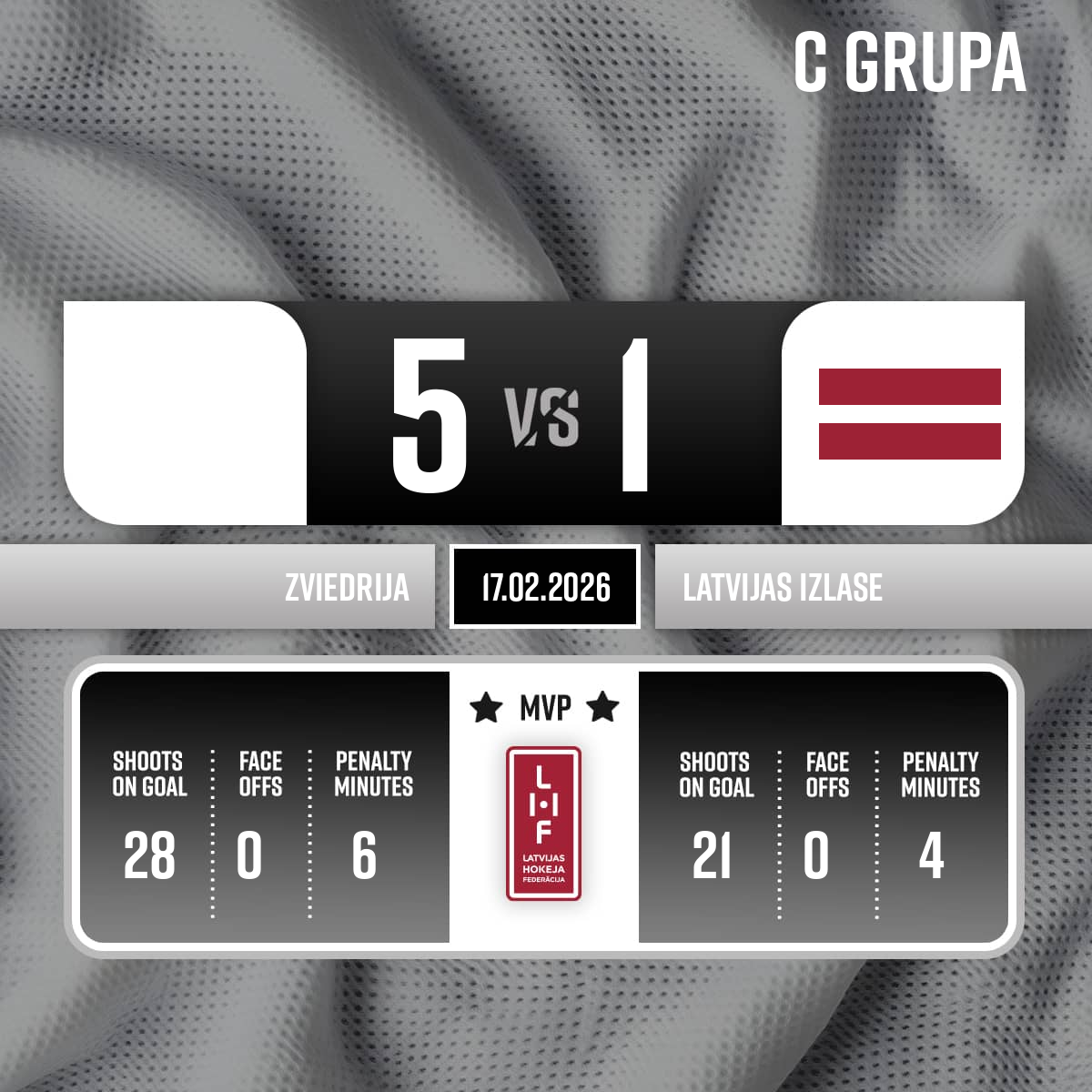 Noraidījums - 2 minūtesBloķēšana, #3 Alberts ŠMITS - 16:541.PNoraidījums - 2 minūtesSpēles laika vilcināšana, #42 Gustav FORSLING