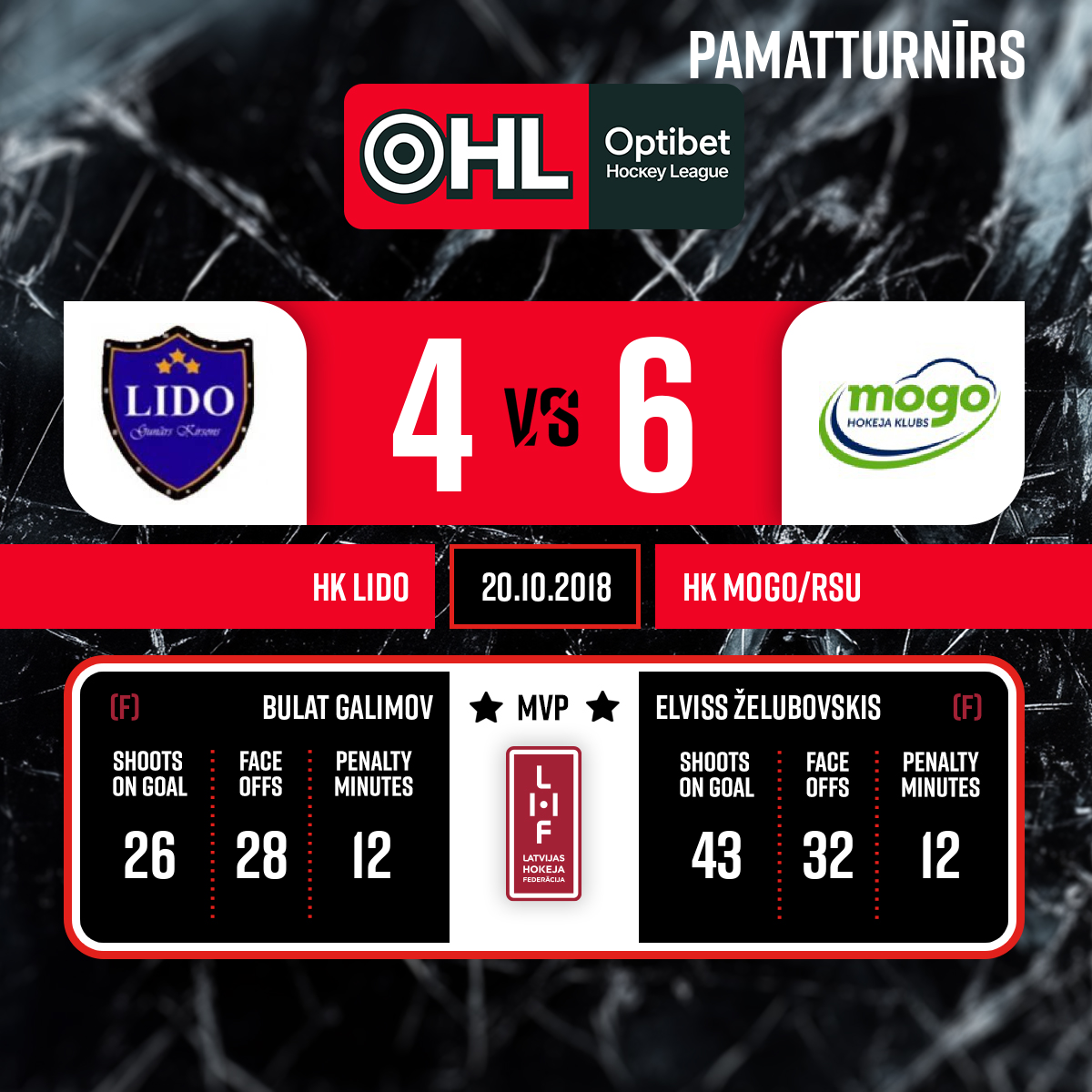 Spēles labākie spēlētāji HK "Lido" Bulat Galimov #88; HK "MOGO" Elvis Želubovskis #17