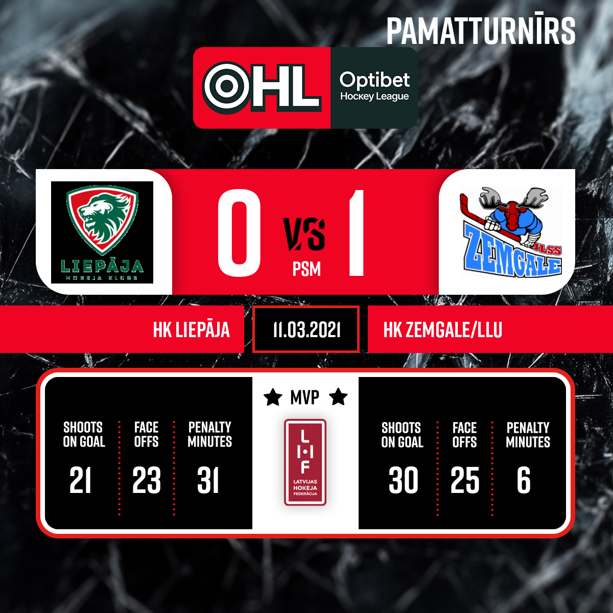Labākie spēlētāji HK Zemgale/LLU Nr.30 M.Bajaruns-Galejs HK Liepāja Nr.35 M.Jučers